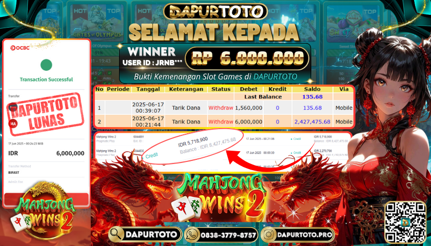 BUKTI JACKPOT SLOT GAME 17 Juni 2025 Posted by team logic MAHJONG WINS 2 SELASA, 17 JUNI 2025 RP.6.000.000,- SELAMAT KEPADA PEMENANG, SALAM JP ! Updated: 17 Juni 2025 at 10:10 am ◀ BUKTI JACKPOT SLOT GAME BUKTI JACKPOT SLOT GAME ▶