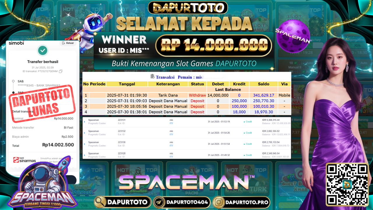 BUKTI JACKPOT SLOT GAME 31 Juli 2025 Posted by team logic SPACEMAN KAMIS, 31 JULI 2025 RP.14.000.000,- SELAMAT KEPADA PEMENANG, SALAM JP ! Updated: 31 Juli 2025 at 5:46 am ◀ BUKTI JACKPOT LIVE GAMES BUKTI JACKPOT LIVE GAMES ▶