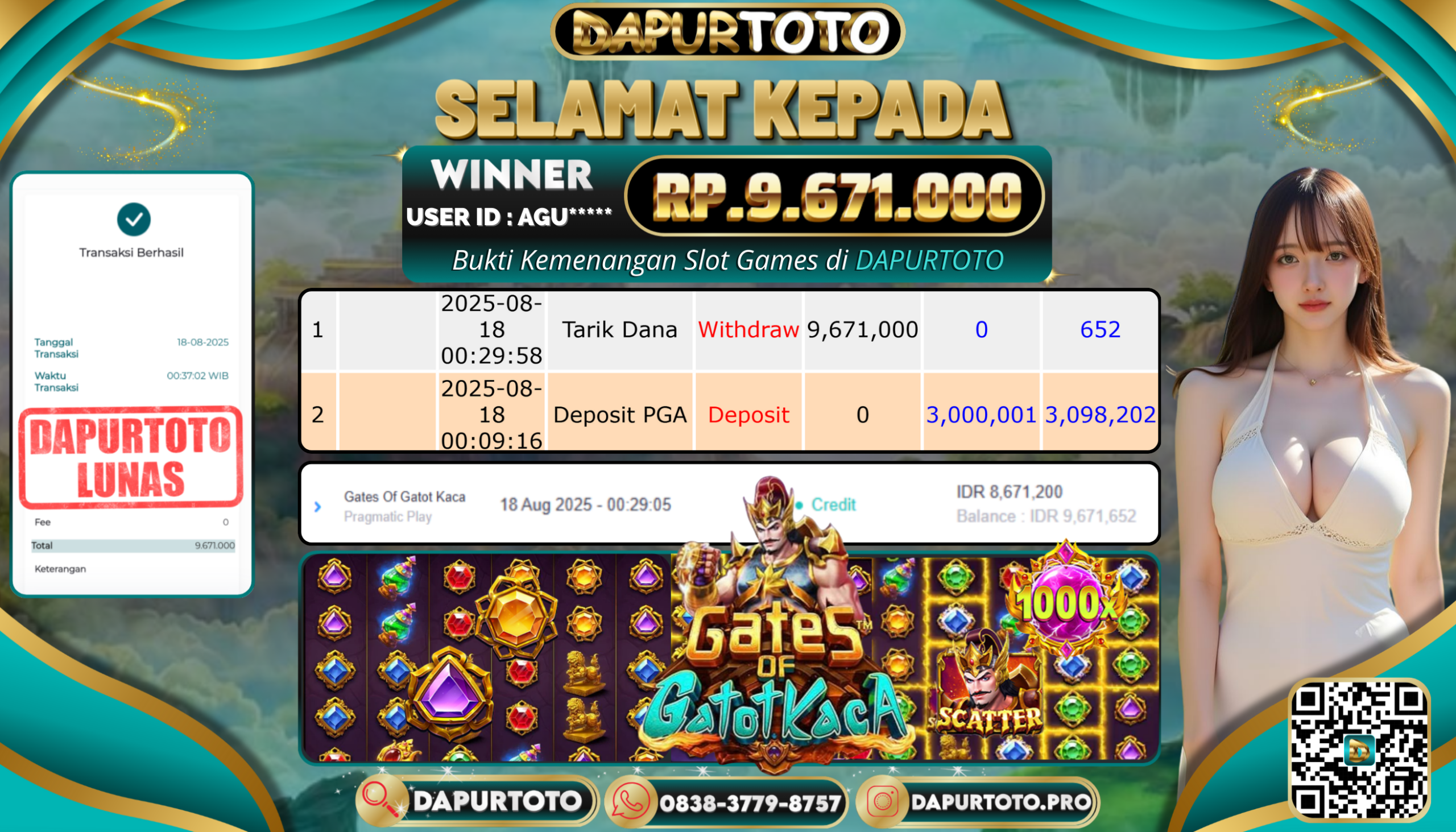 BUKTI JACKPOT SLOT GAME 18 Agustus 2025 Posted by team logic GATES OF GATOT KACA SENIN, 18 AGUSTUS 2025 RP.9.671.000,- SELAMAT KEPADA PEMENANG, SALAM JP ! Updated: 18 Agustus 2025 at 6:22 am ◀ BUKTI JACKPOT SLOT GAME BUKTI JACKPOT SLOT GAME ▶