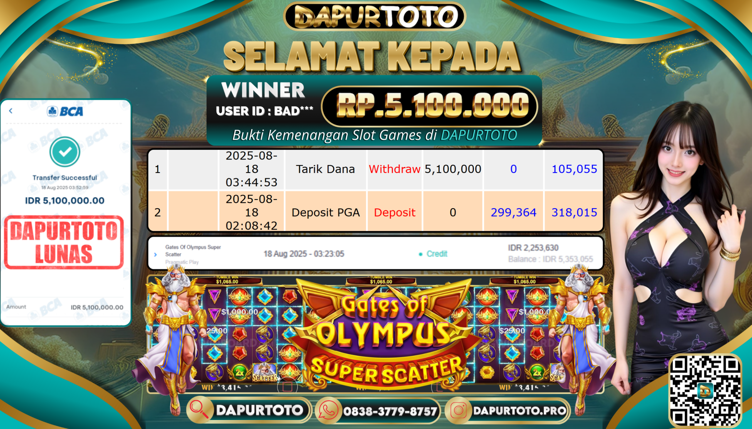 BUKTI JACKPOT SLOT GAME 18 Agustus 2025 Posted by team logic GATES OF OLYMPUS SUPER SCATTER SENIN, 18 AGUSTUS 2025 RP.5.100.000,- SELAMAT KEPADA PEMENANG, SALAM JP ! Updated: 18 Agustus 2025 at 6:30 am ◀ BUKTI JACKPOT SLOT GAME BUKTI JACKPOT SLOT GAME ▶