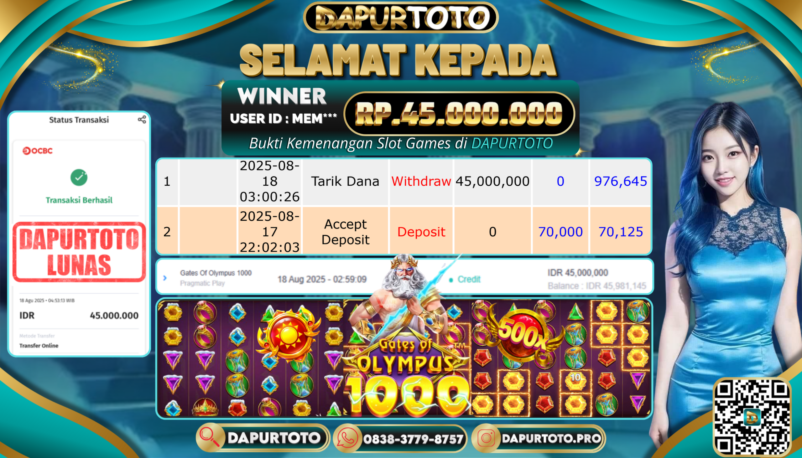 BUKTI JACKPOT SLOT GAME 18 Agustus 2025 Posted by team logic GATES OF OLYMPUS 1000 SENIN, 18 AGUSTUS 2025 RP.45.000.000,- SELAMAT KEPADA PEMENANG, SALAM JP ! Updated: 18 Agustus 2025 at 6:35 am ◀ BUKTI JACKPOT SLOT GAME BUKTI JACKPOT LIVE GAMES ▶
