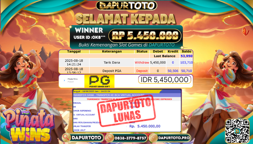 BUKTI JACKPOT SLOT GAME 18 Agustus 2025 Posted by team logic PINATA WINS SENIN, 18 AGUSTUS 2025 RP.5.450.000,- SELAMAT KEPADA PEMENANG, SALAM JP ! Updated: 18 Agustus 2025 at 7:23 pm ◀ BUKTI JACKPOT SLOT GAME BUKTI JACKPOT TOGEL ONLINE ▶
