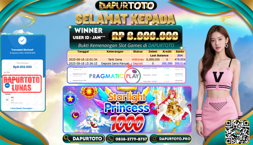BUKTI JACKPOT SLOT GAME 18 Agustus 2025 Posted by team logic STARLIGHT PRINCESS 1000 SENIN, 18 AGUSTUS 2025 RP.8.000.000,- SELAMAT KEPADA PEMENANG, SALAM JP ! Updated: 18 Agustus 2025 at 7:25 pm ◀ BUKTI JACKPOT TOGEL ONLINE BUKTI JACKPOT SLOT GAME ▶