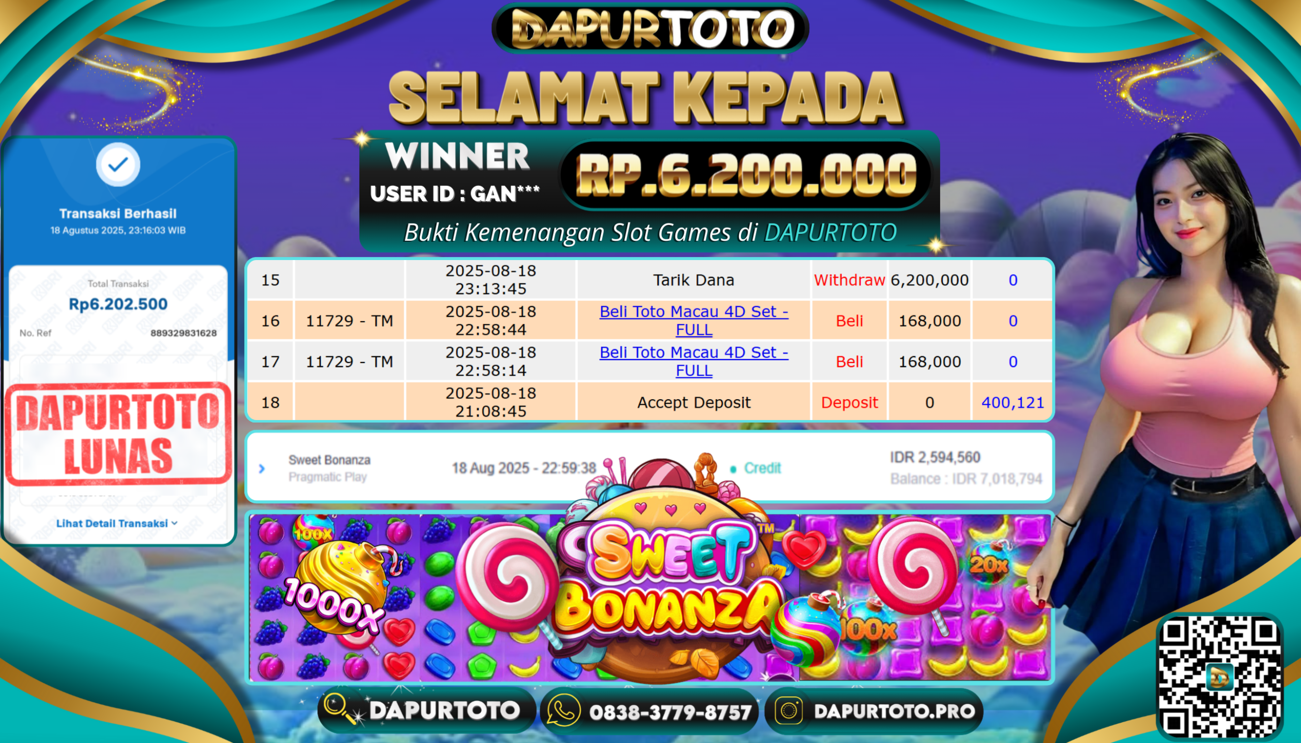 BUKTI JACKPOT SLOT GAME 18 Agustus 2025 Posted by team logic SWEET BONANZA SENIN, 18 AGUSTUS 2025 RP.6.200.000,- SELAMAT KEPADA PEMENANG, SALAM JP ! Updated: 19 Agustus 2025 at 3:32 am ◀ PREDIKSI TOGEL TOTO MACAU BUKTI JACKPOT SLOT GAME ▶