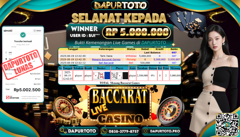 BUKTI JACKPOT LIVE GAMES 19 Agustus 2025 Posted by team logic BACCARAT SELASA, 19 AGUSTUS 2025 RP. 5.000.000,- SELAMAT KEPADA PEMENANG, SALAM JP ! Updated: 19 Agustus 2025 at 8:42 pm ◀ PREDIKSI CHINA BUKTI JACKPOT SLOT GAME ▶