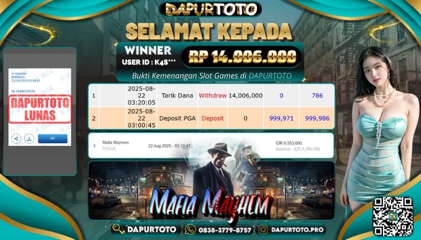 BUKTI JACKPOT SLOT GAME 22 Agustus 2025 Posted by team logic MAFIA MAYHEM JUM’AT, 22 AGUSTUS 2025 RP. 14.006.000,- SELAMAT KEPADA PEMENANG, SALAM JP ! Updated: 22 Agustus 2025 at 3:53 pm ◀ BUKTI JACKPOT SLOT GAME BUKTI JACKPOT SLOT GAME ▶