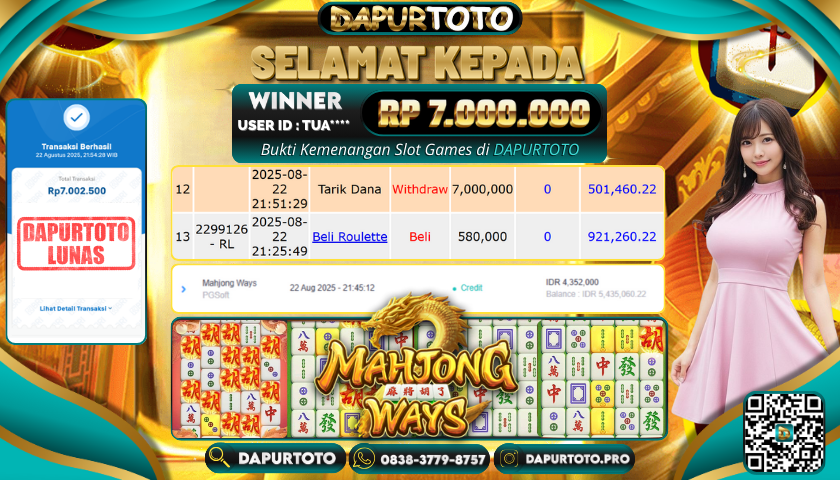 BUKTI JACKPOT SLOT GAME 22 Agustus 2025 Posted by team logic MAHJONG WAYS JUM’AT, 22 AGUSTUS 2025 RP. 7.000.000,- SELAMAT KEPADA PEMENANG, SALAM JP ! Updated: 23 Agustus 2025 at 7:14 am ◀ BUKTI JACKPOT SLOT GAME BUKTI JACKPOT TOGEL ONLINE ▶