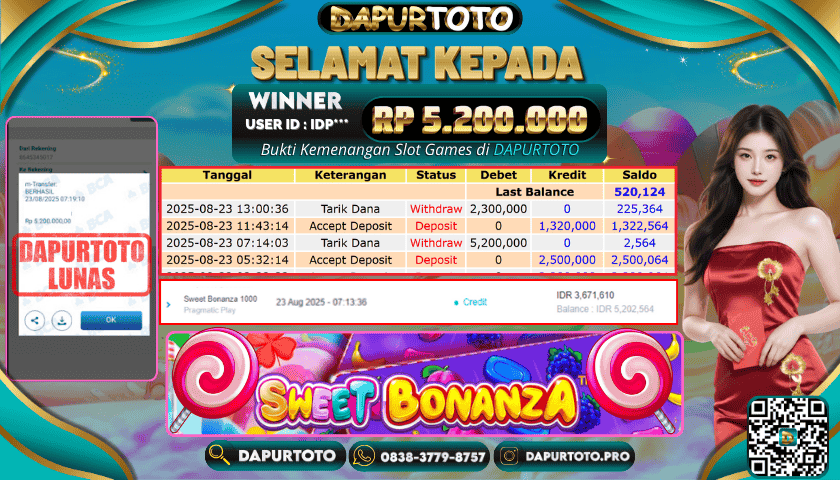 BUKTI JACKPOT SLOT GAME 23 Agustus 2025 Posted by team logic SWEET BONANZA SABTU, 23 AGUSTUS 2025 RP. 5.200.000,- SELAMAT KEPADA PEMENANG, SALAM JP ! Updated: 23 Agustus 2025 at 9:50 pm ◀ BUKTI JACKPOT LIVE GAMES BUKTI JACKPOT SLOT GAME ▶