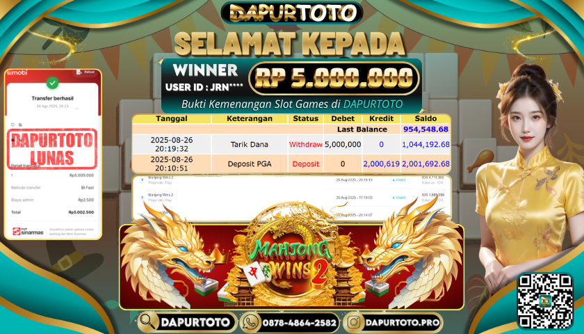 BUKTI JACKPOT SLOT GAME 26 Agustus 2025 Posted by team logic MAHJONG WINS 2 SELASA, 26 AGUSTUS 2025 RP. 5.000.000,- SELAMAT KEPADA PEMENANG, SALAM JP ! Updated: 26 Agustus 2025 at 9:03 pm ◀ BUKTI JACKPOT SLOT GAME PREDIKSI BULLSEYE ▶
