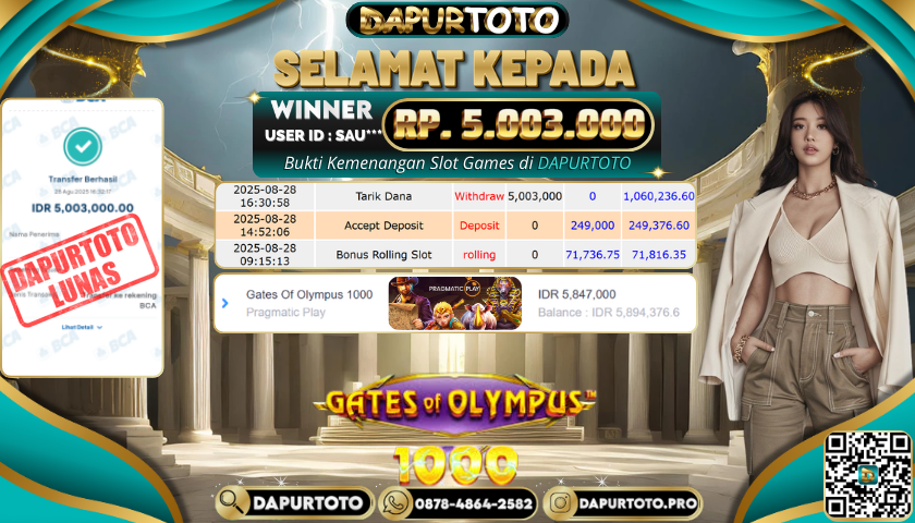 BUKTI JACKPOT SLOT GAME 28 Agustus 2025 Posted by team logic GATES OF OLYMPUS 1000 KAMIS, 28 AGUSTUS 2025 RP. 5.003.000,- SELAMAT KEPADA PEMENANG, SALAM JP ! Updated: 28 Agustus 2025 at 8:33 pm ◀ BUKTI JACKPOT SLOT GAME PREDIKSI BULLSEYE ▶