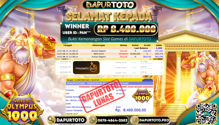 BUKTI JACKPOT SLOT GAME 31 Agustus 2025 Posted by team logic GATES OF OLYMPUS 1000 MINGGU, 31 AGUSTUS 2025 RP. 8.400.000,- SELAMAT KEPADA PEMENANG, SALAM JP ! Updated: 31 Agustus 2025 at 7:17 pm ◀ BUKTI JACKPOT TOGEL ONLINE BUKTI JACKPOT SLOT GAME ▶