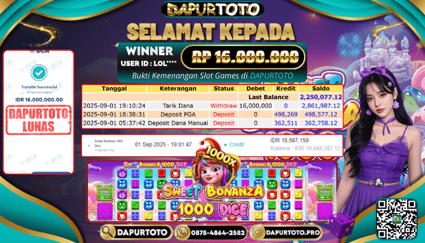 BUKTI JACKPOT SLOT GAME 1 September 2025 Posted by team logic SWEET BONANZA 1000 SENIN, 1 SEPTEMBER 2025 RP. 16.000.000,- SELAMAT KEPADA PEMENANG, SALAM JP ! Updated: 1 September 2025 at 9:55 pm ◀ BUKTI JACKPOT SLOT GAME BUKTI JACKPOT SLOT GAME ▶