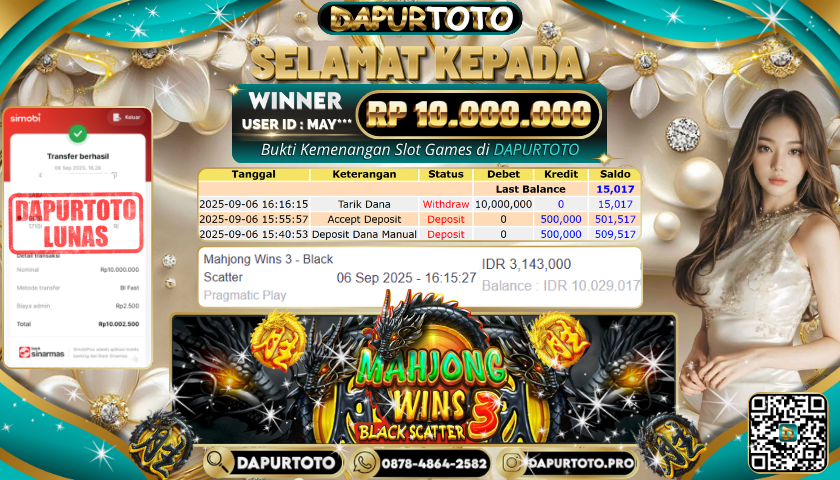BUKTI JACKPOT SLOT GAME 6 September 2025 Posted by team logic MAHJONG WINS 3 BLACK SCATTER SABTU, 6 SEPTEMBER 2025 RP. 10.000.000,- SELAMAT KEPADA PEMENANG, SALAM JP ! Updated: 6 September 2025 at 6:18 pm ◀ BUKTI JACKPOT SLOT GAME PREDIKSI BULLSEYE ▶