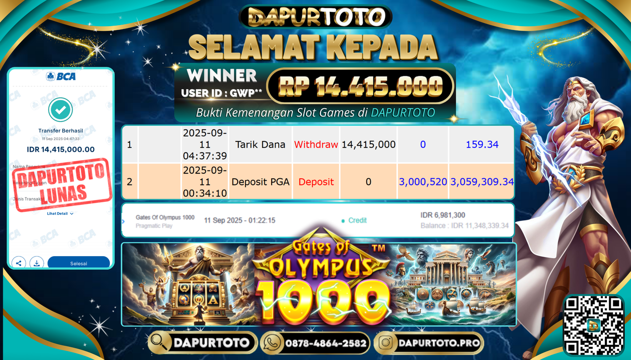 BUKTI JACKPOT SLOT GAMES 11 September 2025 Posted by team logic GATES OF OLYMPUS 1000 KAMIS, 11 SEPTEMBER 2025 RP. 14.415.000,- SELAMAT KEPADA PEMENANG, SALAM JP ! Updated: 11 September 2025 at 3:09 pm ◀ BUKTI JACKPOT SLOT GAMES BUKTI JACKPOT SLOT GAMES ▶