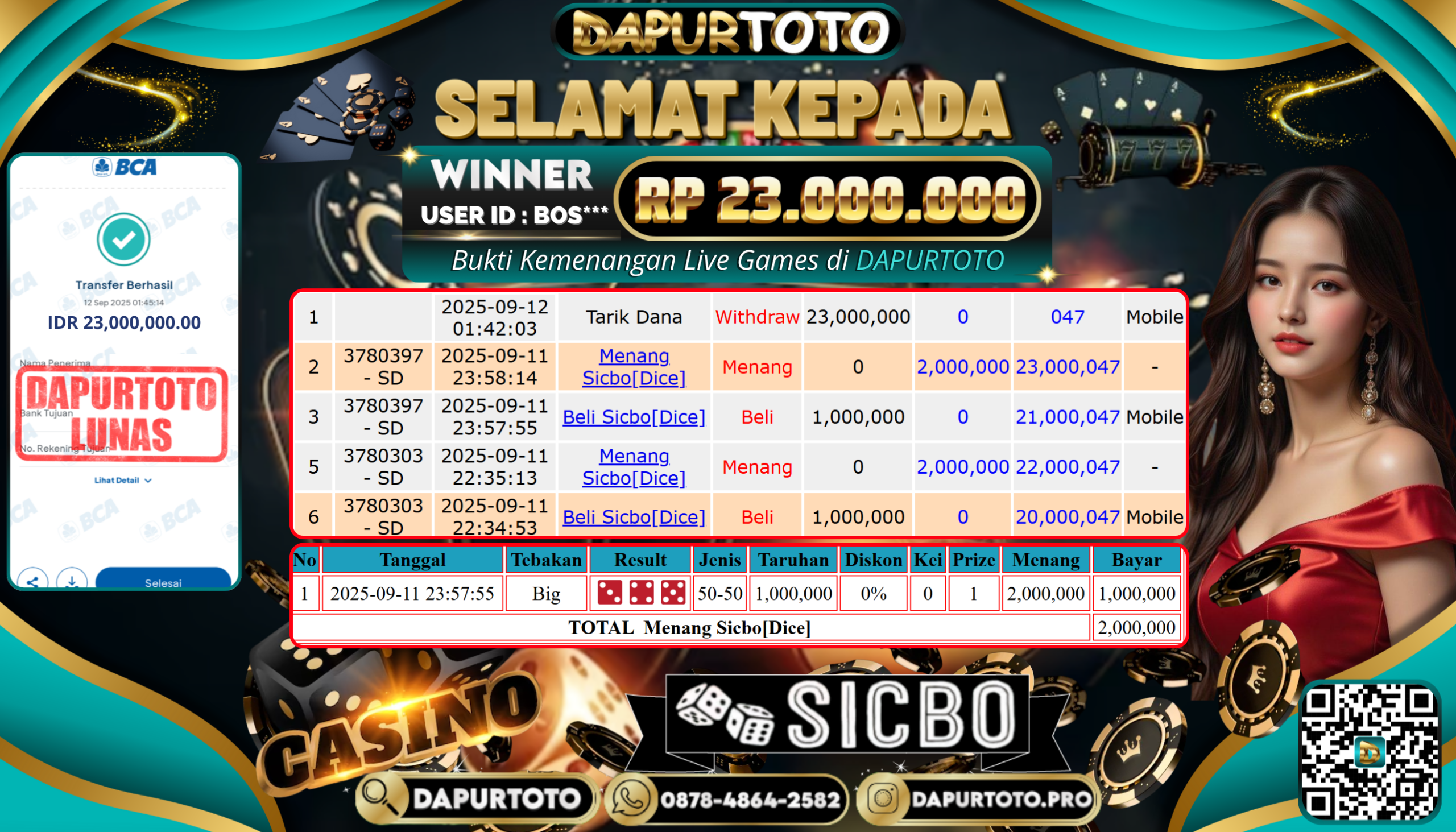 BUKTI JACKPOT LIVES GAMES 12 September 2025 Posted by team logic SICBO JUMAT, 12 SEPTEMBER 2025 RP. 23.000.000,- SELAMAT KEPADA PEMENANG, SALAM JP ! Updated: 12 September 2025 at 8:31 am ◀ PREDIKSI TOGEL TOTO MACAU BUKTI JACKPOT SLOT GAME ▶