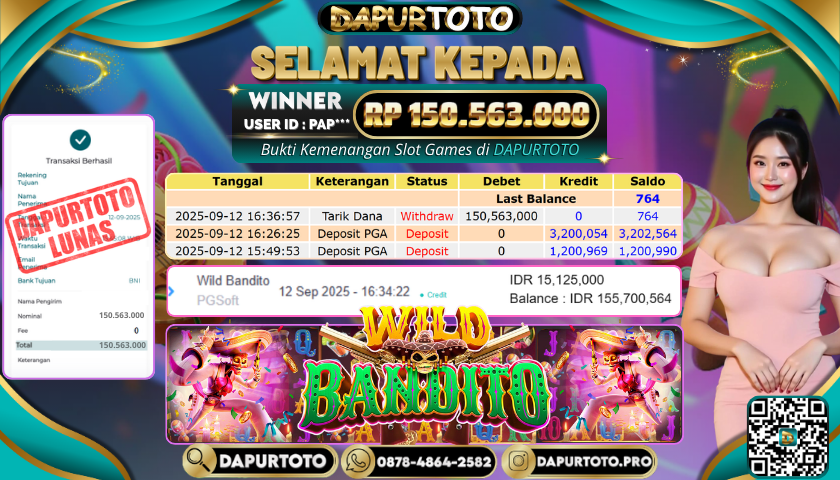 BUKTI JACKPOT SLOT GAME 12 September 2025 Posted by team logic WILD BANDITO JUMAT, 12 SEPTEMBER 2025 RP. 150.563.000,- SELAMAT KEPADA PEMENANG, SALAM JP ! Updated: 12 September 2025 at 8:42 pm ◀ BUKTI JACKPOT SLOT GAME PREDIKSI BULLSEYE ▶