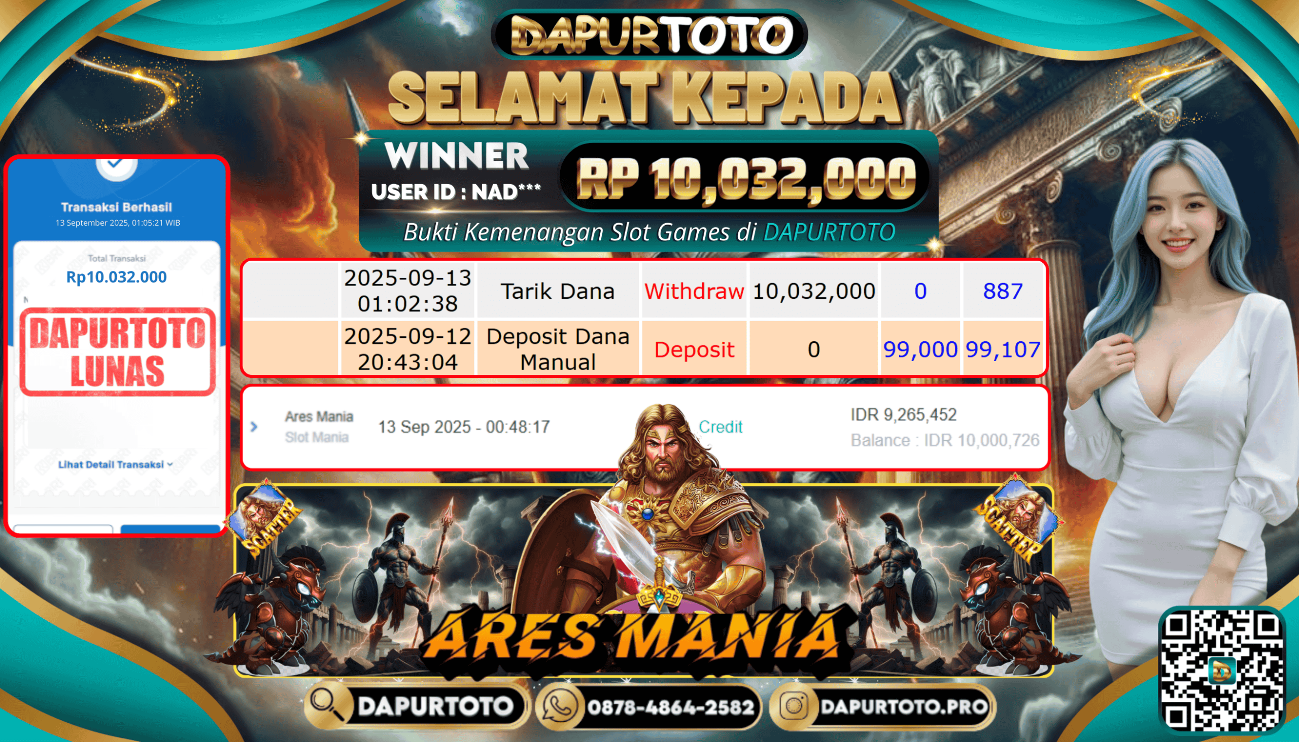 BUKTI JACKPOT SLOT GAME 13 September 2025 Posted by team logic SWORD OF ARES SABTU, 13 SEPTEMBER 2025 RP. 10.032.000,- SELAMAT KEPADA PEMENANG, SALAM JP ! Updated: 13 September 2025 at 3:32 am ◀ BUKTI JACKPOT TOGEL ONLINE BUKTI JACKPOT SLOT GAME ▶