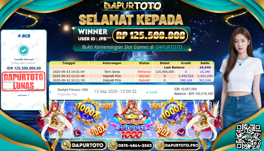 BUKTI JACKPOT SLOT GAME 13 September 2025 Posted by team logic STARLIGHT PRINCESS 1000 SABTU, 13 SEPTEMBER 2025 RP. 125.500.000,- SELAMAT KEPADA PEMENANG, SALAM JP ! Updated: 13 September 2025 at 3:35 pm ◀ BUKTI JACKPOT SLOT GAME BUKTI JACKPOT SLOT GAME ▶
