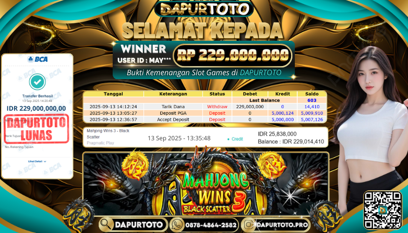 BUKTI JACKPOT SLOT GAME 13 September 2025 Posted by team logic MAHJONG WINS 3 BLACK SCATTER SABTU, 13 SEPTEMBER 2025 RP. 229.000.000,- SELAMAT KEPADA PEMENANG, SALAM JP ! Updated: 13 September 2025 at 3:48 pm ◀ BUKTI JACKPOT SLOT GAME PREDIKSI BULLSEYE ▶
