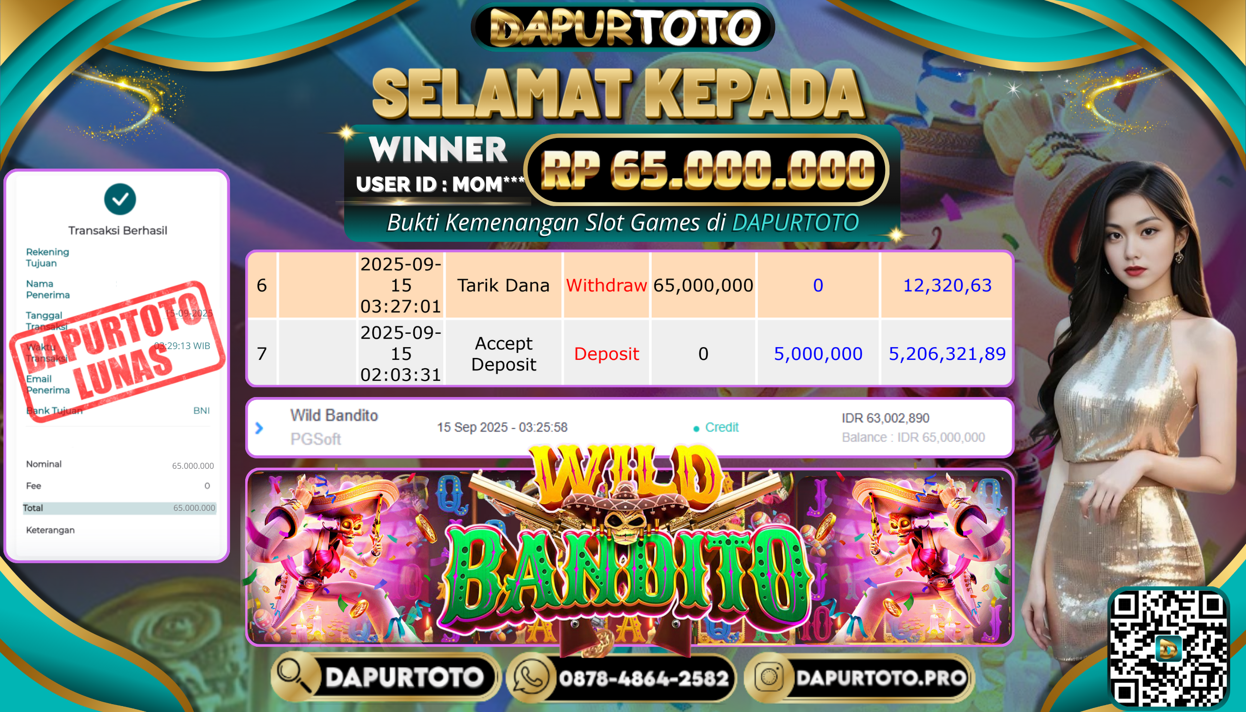 BUKTI JACKPOT SLOT GAMES 15 September 2025 Posted by team logic WILD BANDITO SENIN, 15 SEPTEMBER 2025 RP. 65.000.000,- SELAMAT KEPADA PEMENANG, SALAM JP ! Updated: 15 September 2025 at 5:13 am ◀ BUKTI JACKPOT SLOT GAMES BUKTI JACKPOT SLOT GAMES ▶