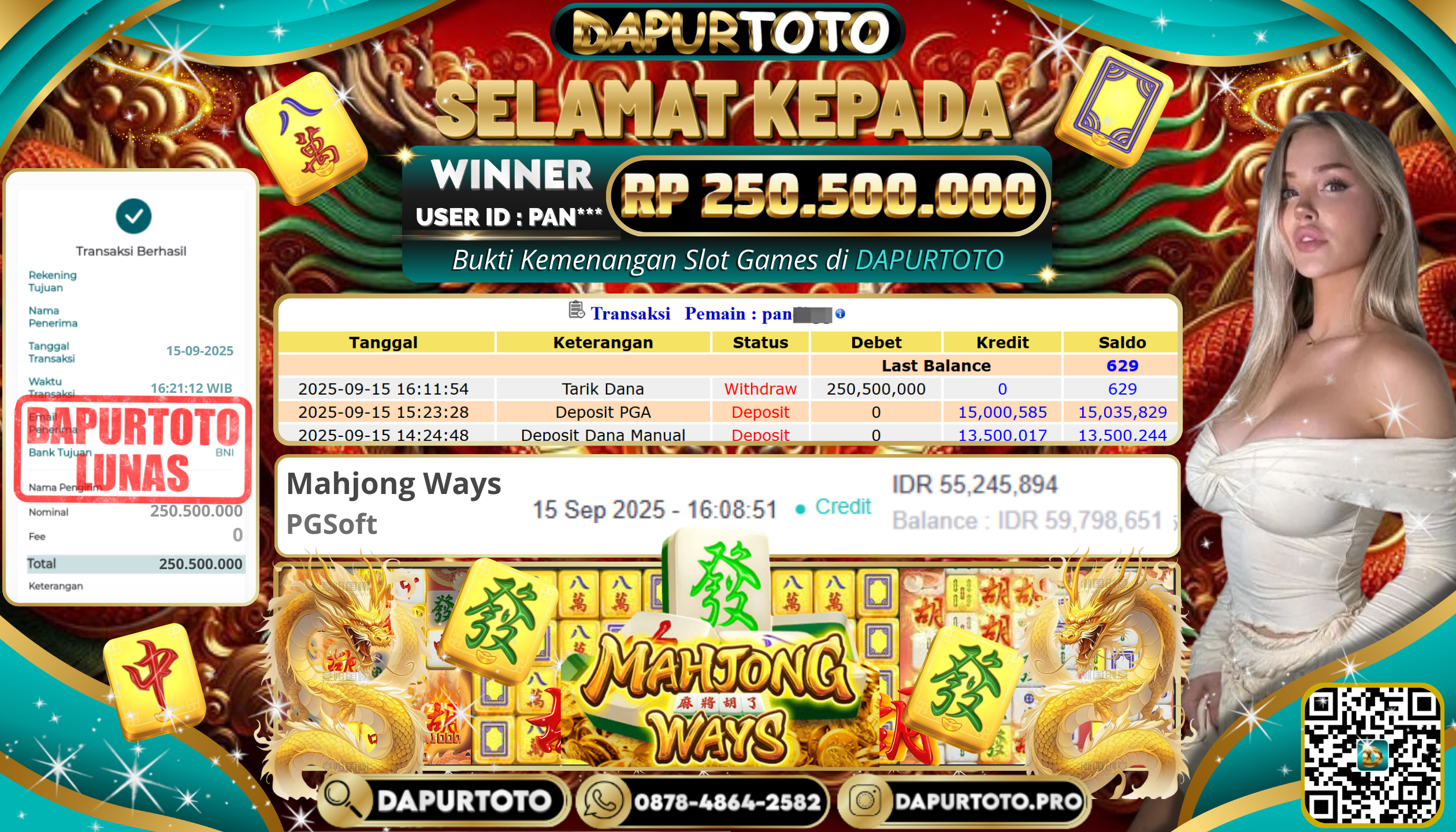 BUKTI JACKPOT SLOT GAME 15 September 2025 Posted by team logic MAHJONG WAYS SENIN, 15 SEPTEMBER 2025 RP. 250.500.000,- SELAMAT KEPADA PEMENANG, SALAM JP ! Updated: 15 September 2025 at 5:47 pm ◀ BUKTI JACKPOT SLOT GAME PREDIKSI BULLSEYE ▶