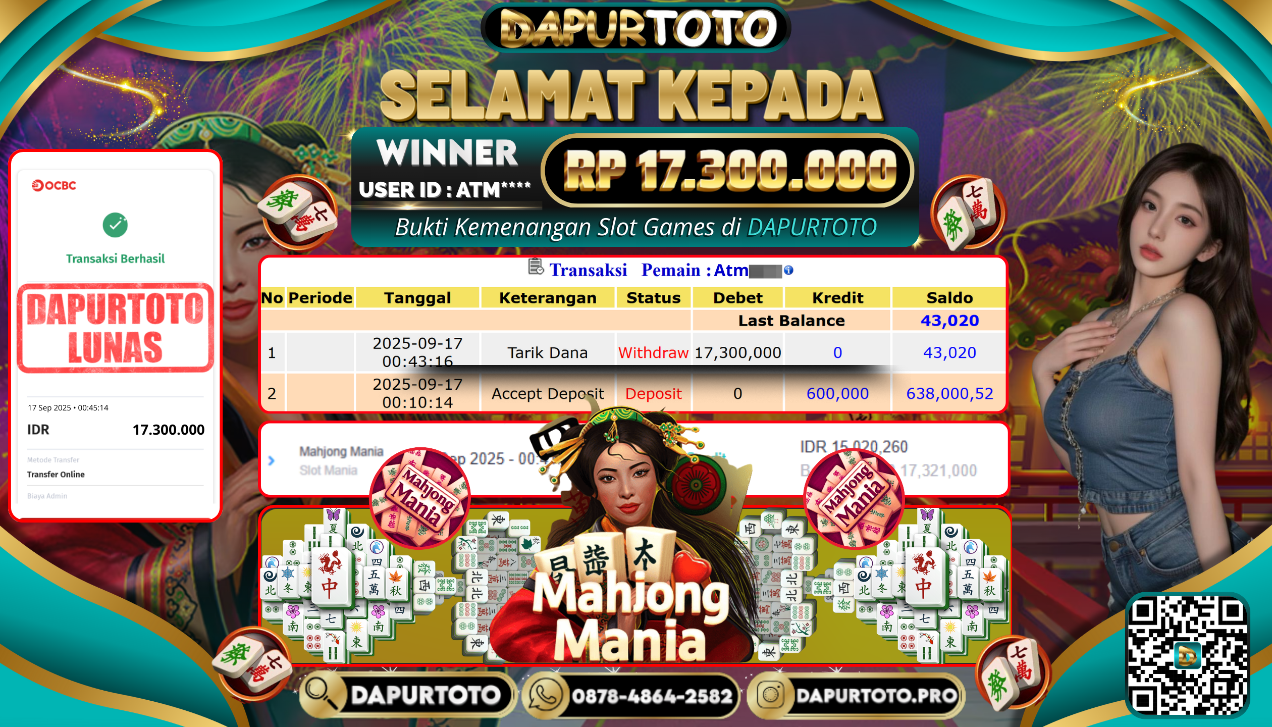 BUKTI JACKPOT SLOT GAME 17 September 2025 Posted by team logic MAHJONG MANIA RABU, 17 SEPTEMBER 2025 RP. 17.300.000,- SELAMAT KEPADA PEMENANG, SALAM JP ! Updated: 17 September 2025 at 8:48 am ◀ PREDIKSI TOGEL TOTO MACAU BUKTI JACKPOT SLOT GAME ▶