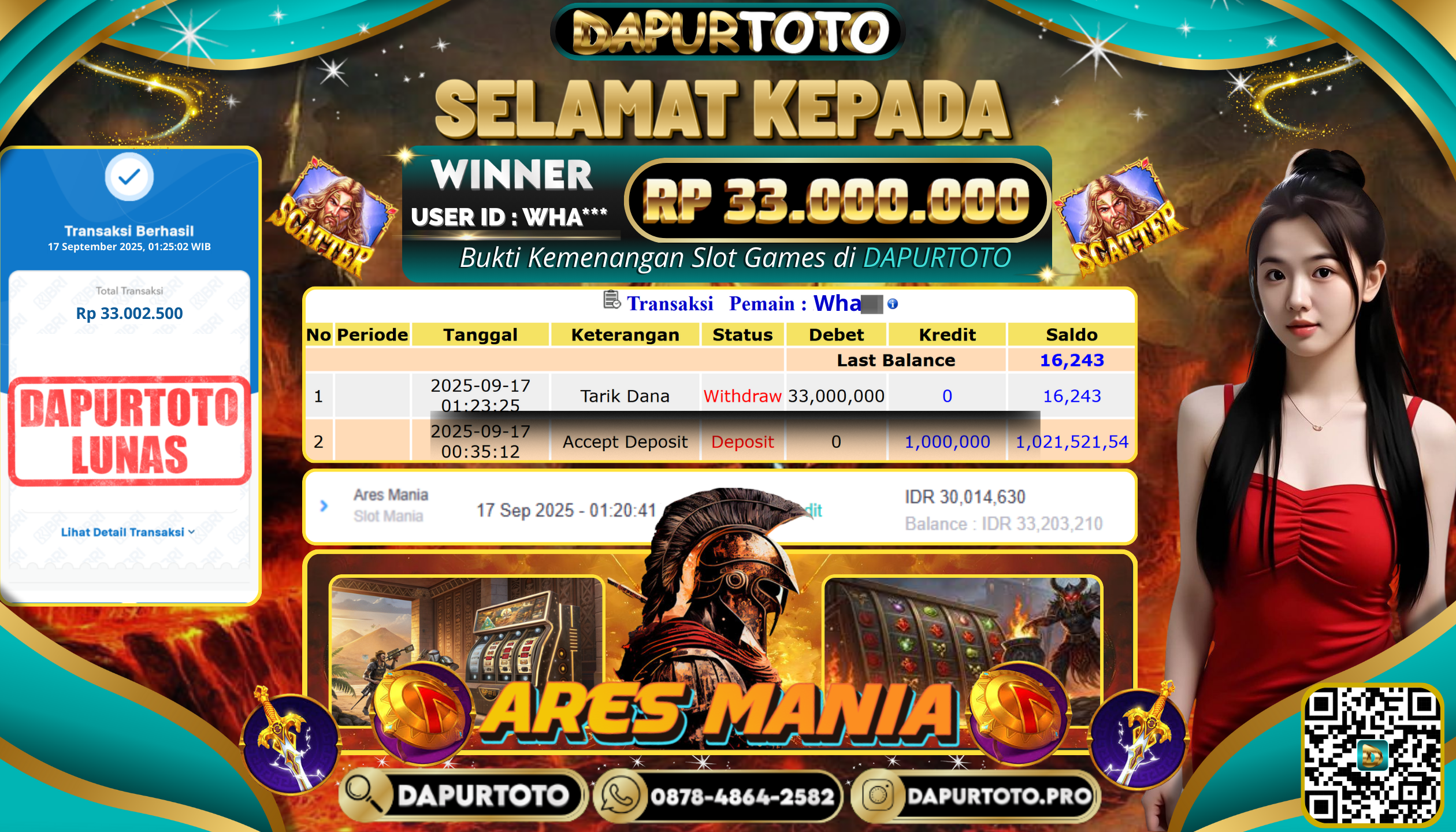 BUKTI JACKPOT SLOT GAME 17 September 2025 Posted by team logic ARES MANIA RABU, 17 SEPTEMBER 2025 RP. 33.000.000,- SELAMAT KEPADA PEMENANG, SALAM JP ! Updated: 17 September 2025 at 10:28 am ◀ BUKTI JACKPOT SLOT GAME BUKTI JACKPOT SLOT GAME ▶