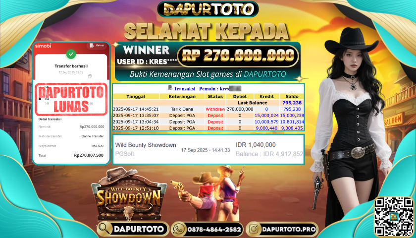 BUKTI JACKPOT SLOT GAME 17 September 2025 Posted by team logic WILD BOUNTY SHOWDOWN RABU, 17 SEPTEMBER 2025 RP. 270.000.000,- SELAMAT KEPADA PEMENANG, SALAM JP ! Updated: 17 September 2025 at 5:08 pm ◀ BUKTI JACKPOT SLOT GAME PREDIKSI BULLSEYE ▶