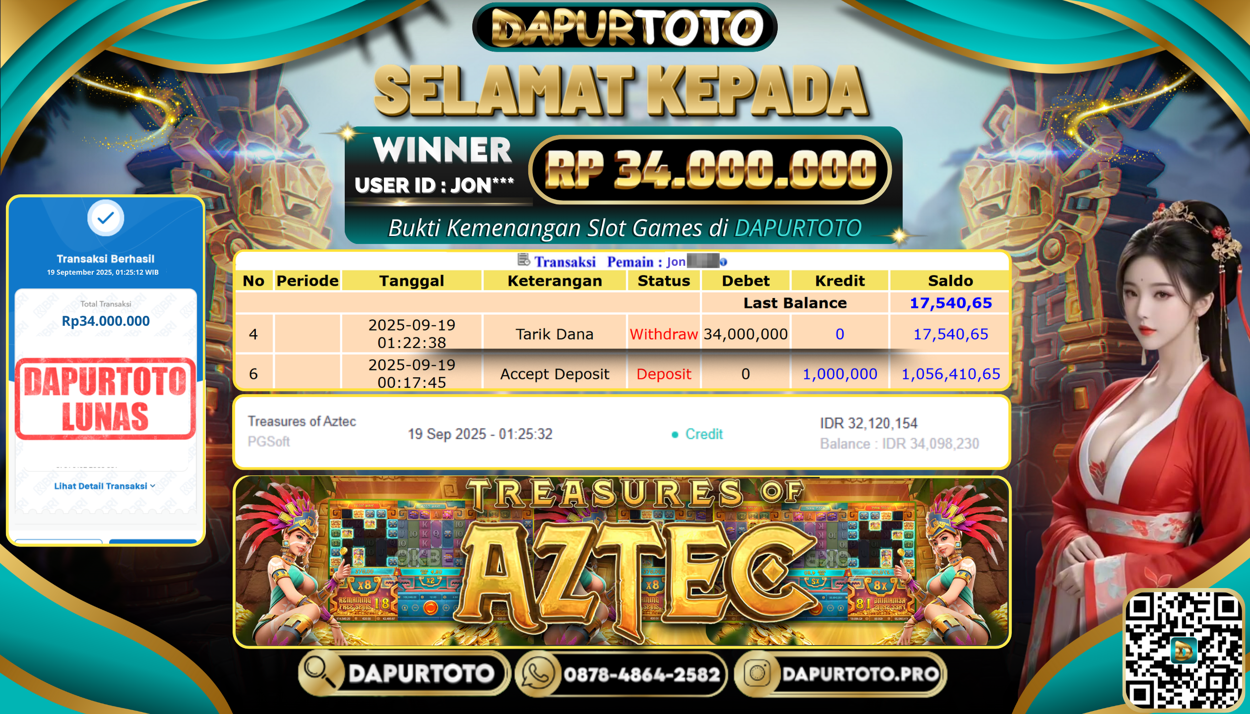 BUKTI JACKPOT SLOT GAME 19 September 2025 Posted by team logic TREASURES OF AZTEC JUM’AT, 19 SEPTEMBER 2025 RP. 34.000.000,- SELAMAT KEPADA PEMENANG, SALAM JP ! Updated: 19 September 2025 at 8:51 am ◀ BUKTI JACKPOT SLOT GAME BUKTI JACKPOT SLOT GAME ▶