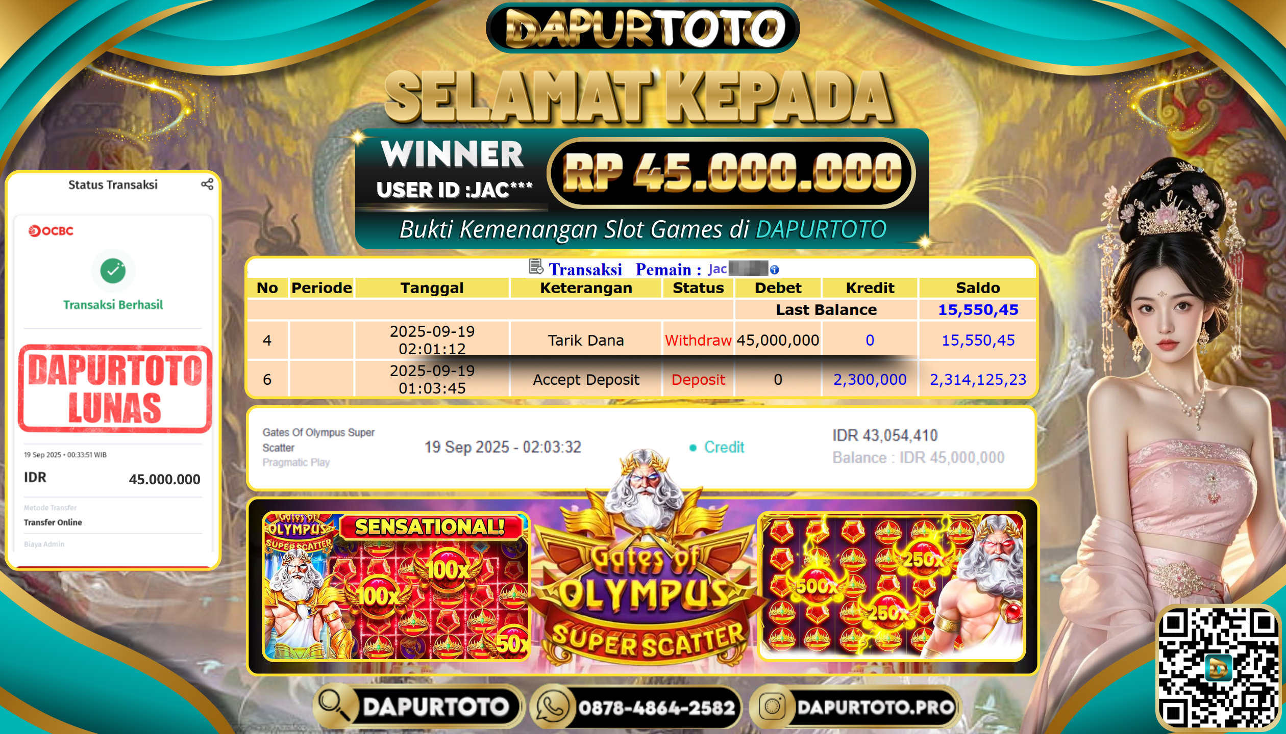 BUKTI JACKPOT SLOT GAME 19 September 2025 Posted by team logic GATES OF OLYMPUS SUPER SCATTER JUM’AT, 19 SEPTEMBER 2025 RP. 45.000.000,- SELAMAT KEPADA PEMENANG, SALAM JP ! Updated: 19 September 2025 at 8:53 am ◀ BUKTI JACKPOT SLOT GAME BUKTI JACKPOT SLOT GAME ▶