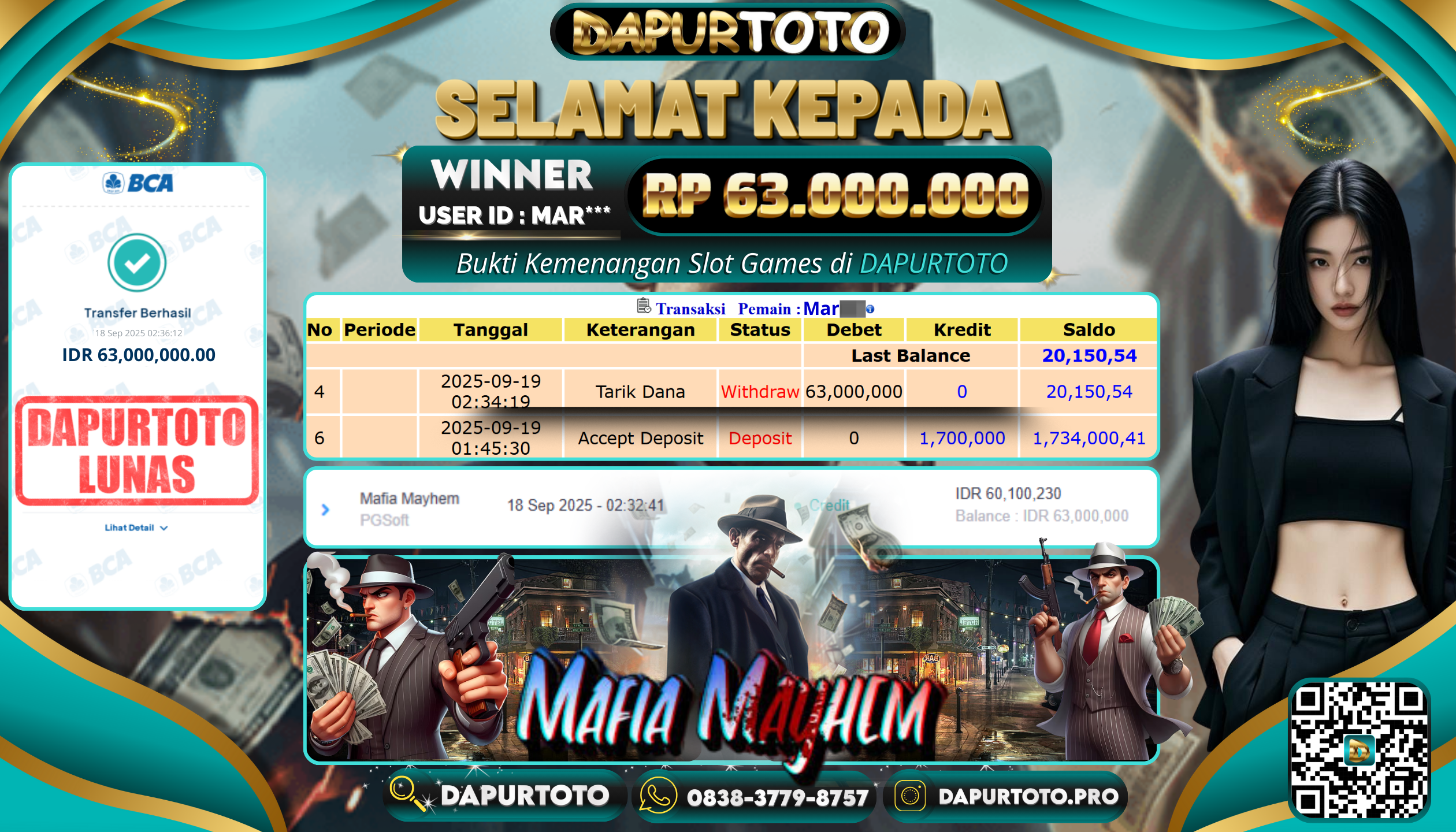 BUKTI JACKPOT SLOT GAME 19 September 2025 Posted by team logic MAFIA MAYHEM JUM’AT, 19 SEPTEMBER 2025 RP. 63.000.000,- SELAMAT KEPADA PEMENANG, SALAM JP ! Updated: 19 September 2025 at 8:54 am ◀ BUKTI JACKPOT SLOT GAME BUKTI JACKPOT SLOT GAME ▶
