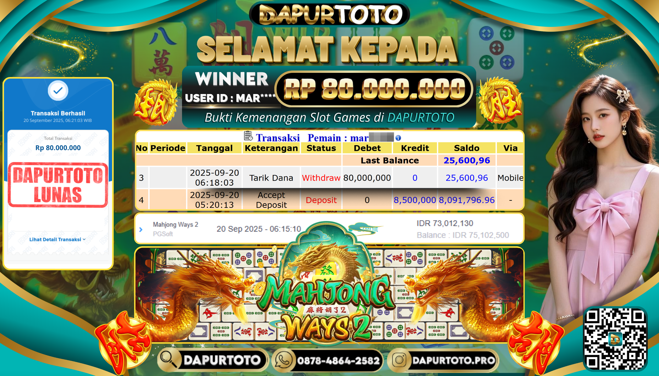 BUKTI JACKPOT SLOT GAME 20 September 2025 Posted by team logic MAHJONG WAYS 2 SABTU, 20 SEPTEMBER 2025 RP. 80.000.000,- SELAMAT KEPADA PEMENANG, SALAM JP ! Updated: 20 September 2025 at 8:21 am ◀ BUKTI JACKPOT SLOT GAME BUKTI JACKPOT SLOT GAME ▶