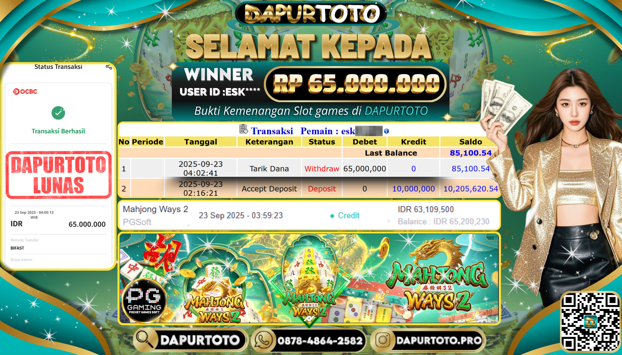 BUKTI JACKPOT SLOT GAME 23 September 2025 Posted by team logic MAHJONG WAYS 2 SELASA, 23 SEPTEMBER 2025 RP. 65.000.000,- SELAMAT KEPADA PEMENANG, SALAM JP ! Updated: 23 September 2025 at 8:19 am ◀ BUKTI JACKPOT SLOT GAME BUKTI JACKPOT SLOT GAME ▶