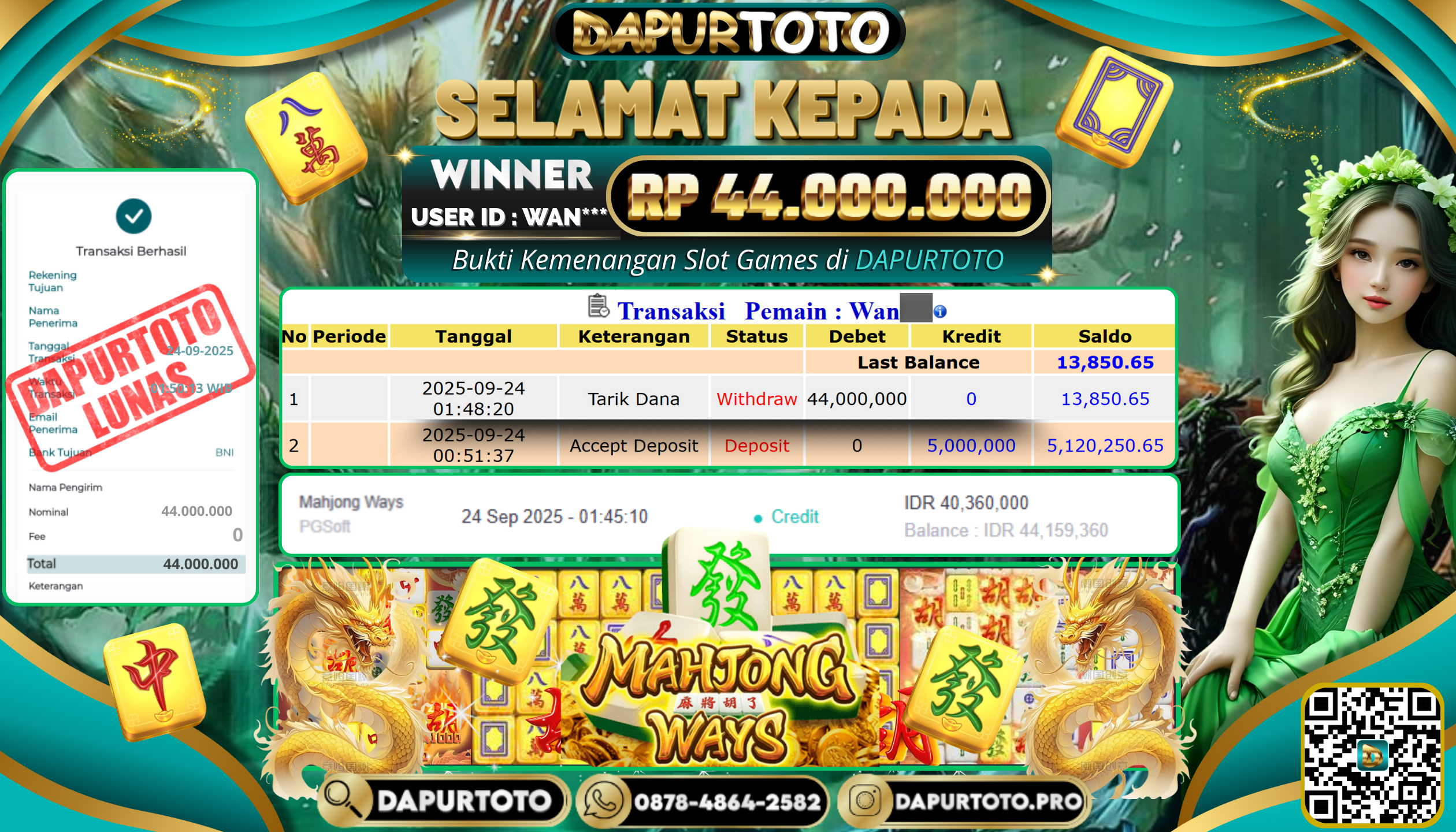 BUKTI JACKPOT SLOT GAME 24 September 2025 Posted by team logic MAHJONG WAYS RABU, 24 SEPTEMBER 2025 RP. 44.000.000,- SELAMAT KEPADA PEMENANG, SALAM JP ! Updated: 24 September 2025 at 6:59 am ◀ BUKTI JACKPOT SLOT GAME BUKTI JACKPOT SLOT GAME ▶
