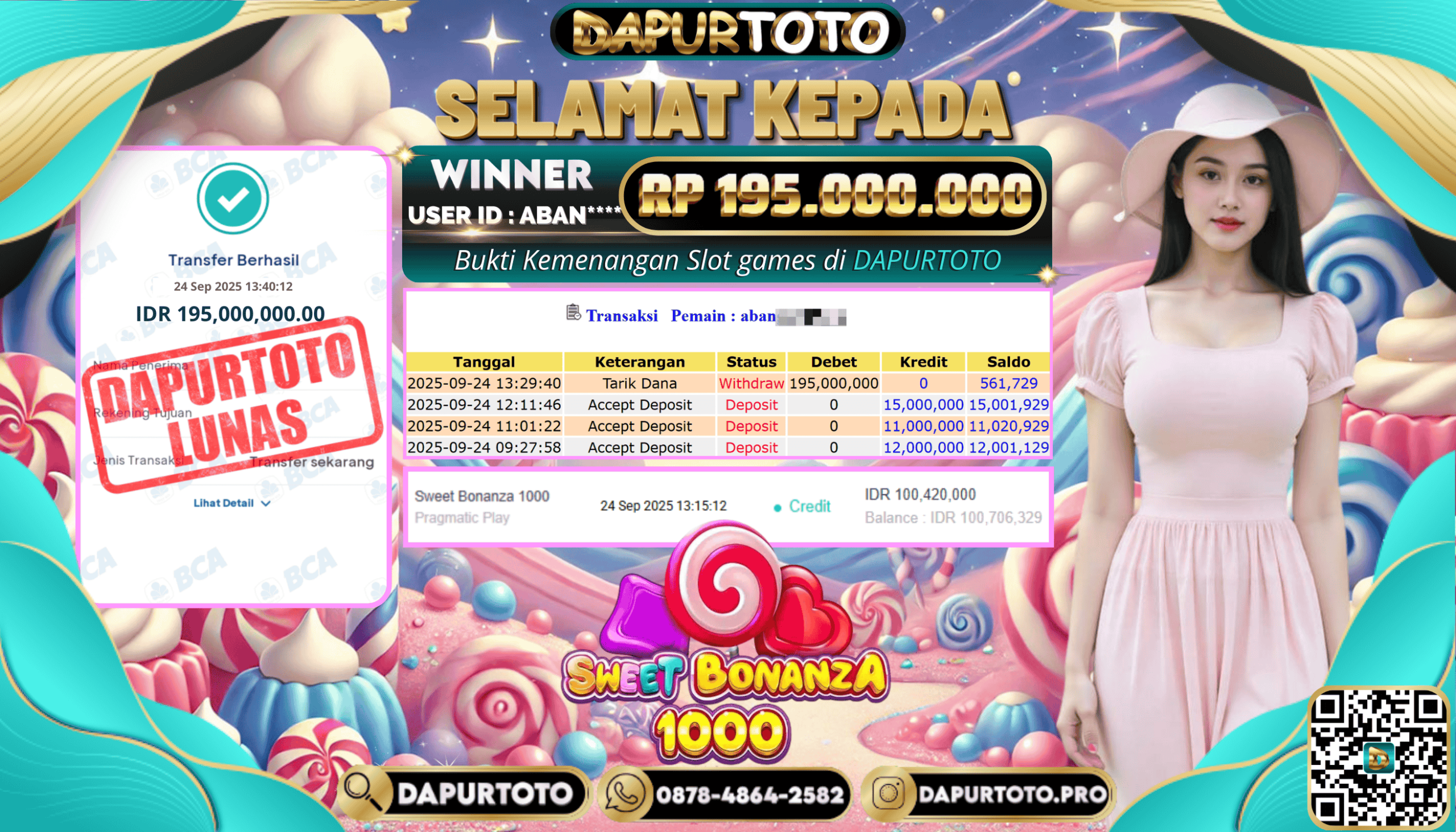 BUKTI JACKPOT SLOT GAME 24 September 2025 Posted by team logic SWEET BONANZA 1000 RABU, 24 SEPTEMBER 2025 RP. 195.000.000,- SELAMAT KEPADA PEMENANG, SALAM JP ! Updated: 24 September 2025 at 2:22 pm ◀ BUKTI JACKPOT SLOT GAME BUKTI JACKPOT SLOT GAME ▶