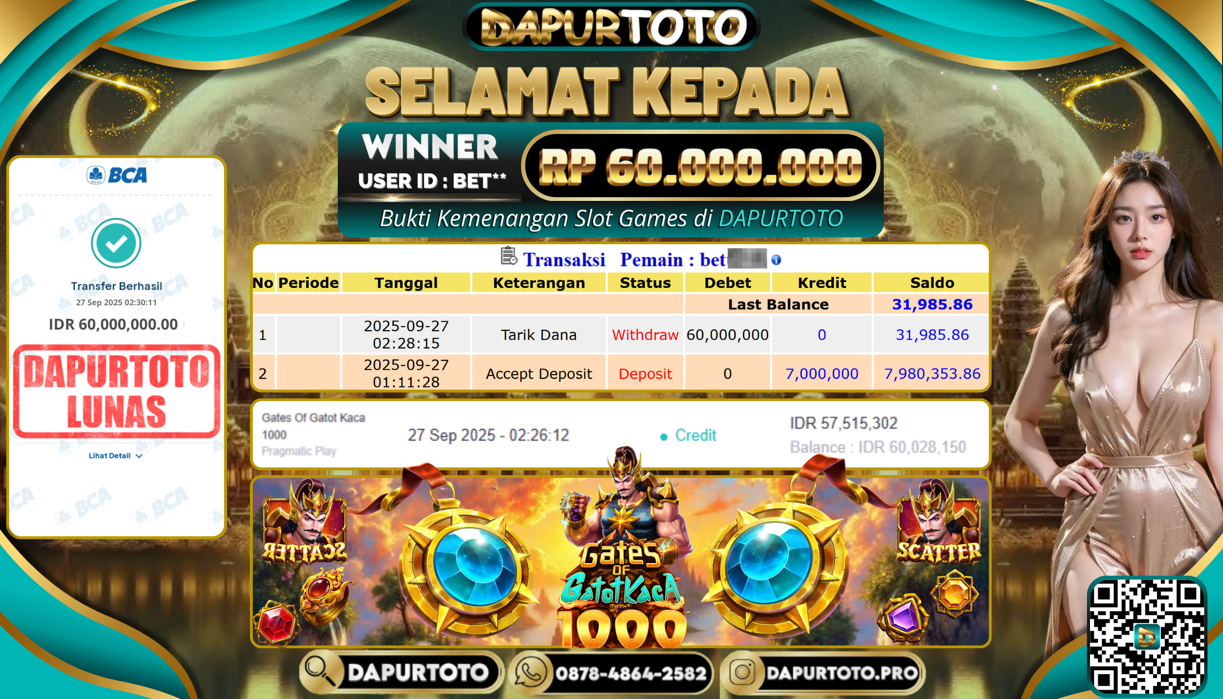 BUKTI JACKPOT SLOT GAME 27 September 2025 Posted by team logic GATES OF GATOT KACA 1000 SABTU, 27 SEPTEMBER 2025 RP. 60.000.000,- SELAMAT KEPADA PEMENANG, SALAM JP ! Updated: 27 September 2025 at 8:44 am ◀ BUKTI JACKPOT SLOT GAME BUKTI JACKPOT SLOT GAME ▶
