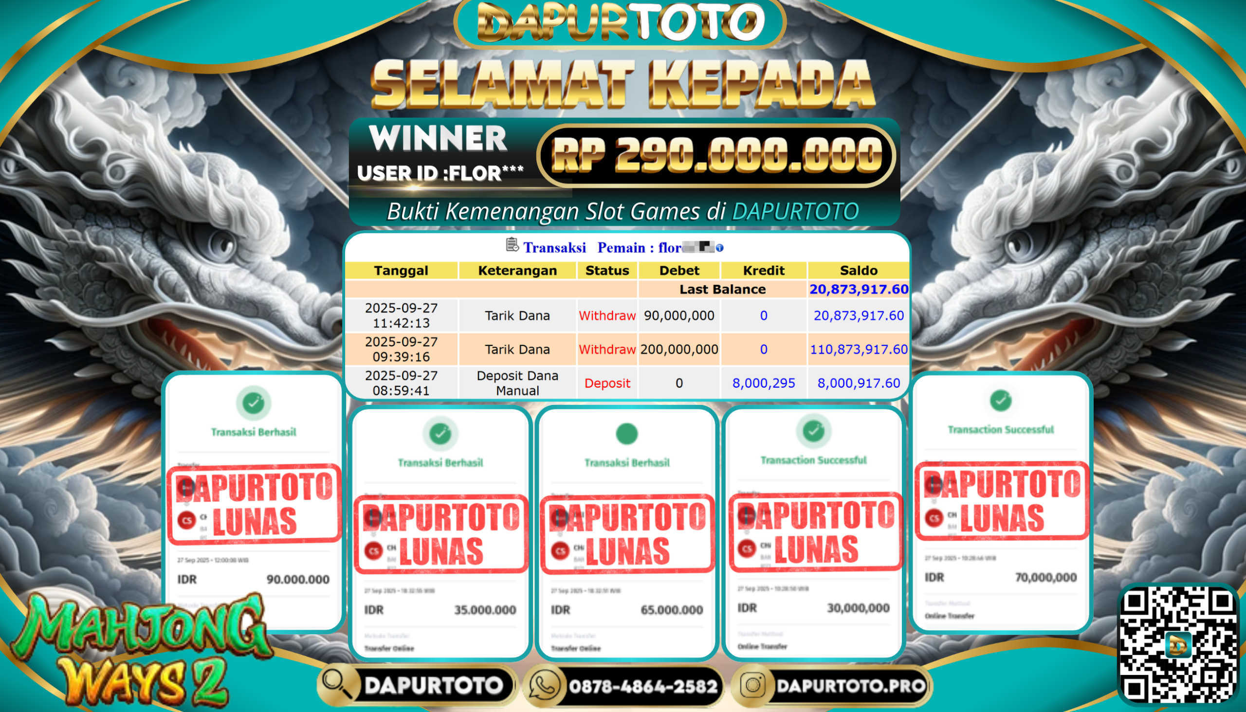 BUKTI JACKPOT SLOT GAME 27 September 2025 Posted by team logic MAHJONG WAYS 2 SABTU, 27 SEPTEMBER 2025 RP. 290.000.000,- SELAMAT KEPADA PEMENANG, SALAM JP ! Updated: 27 September 2025 at 5:50 pm ◀ BUKTI JACKPOT SLOT GAME PREDIKSI BULLSEYE ▶