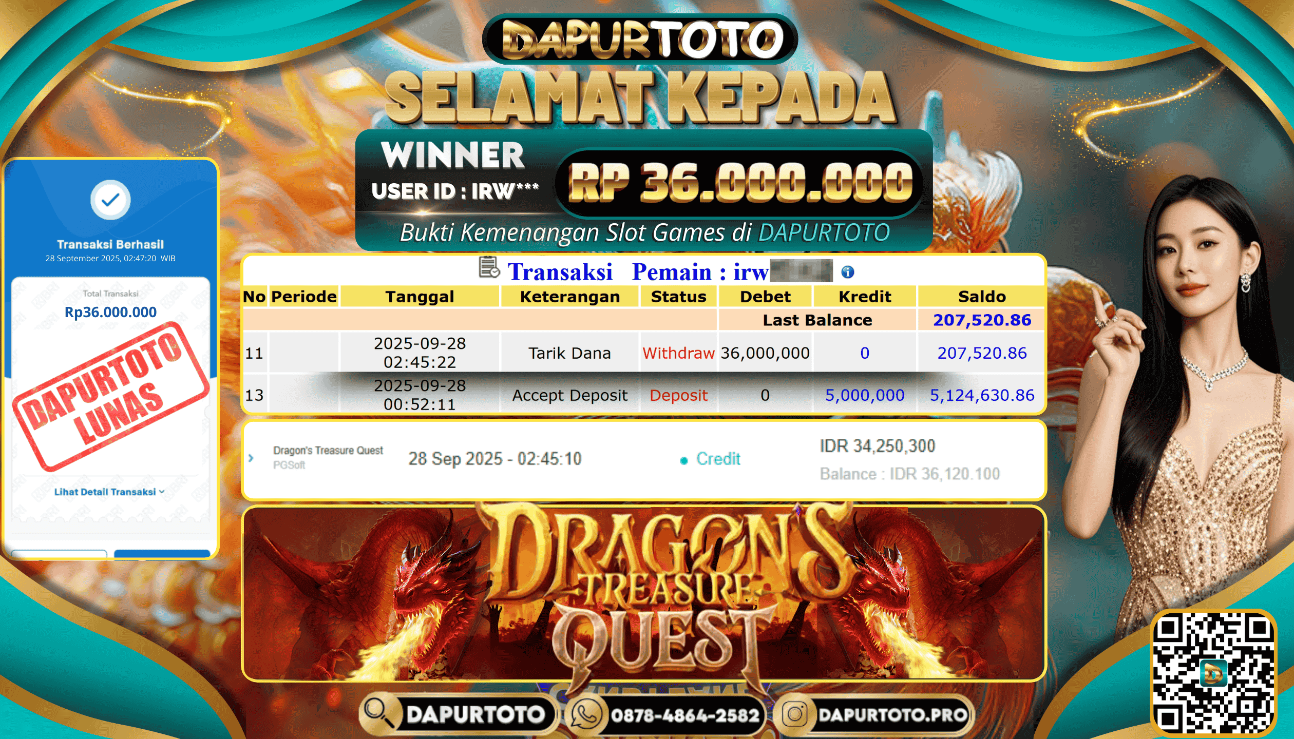 BUKTI JACKPOT SLOT GAME 28 September 2025 Posted by team logic DRAGON’S TREASURE QUEST MINGGU, 28 SEPTEMBER 2025 RP. 36.000.000,- SELAMAT KEPADA PEMENANG, SALAM JP ! Updated: 28 September 2025 at 7:57 am ◀ BUKTI JACKPOT SLOT GAME BUKTI JACKPOT SLOT GAME ▶