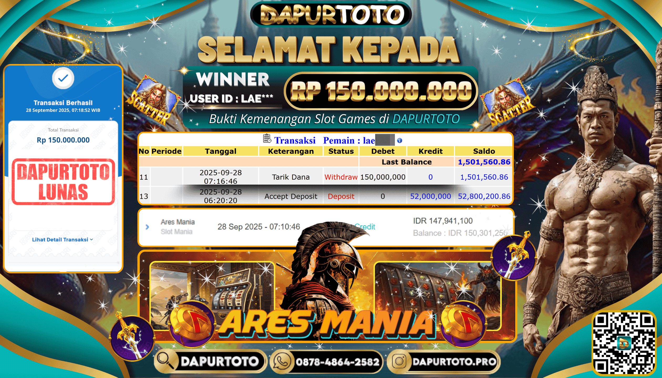 BUKTI JACKPOT SLOT GAME 28 September 2025 Posted by team logic ARES MANIA MINGGU, 28 SEPTEMBER 2025 RP. 150.000.000,- SELAMAT KEPADA PEMENANG, SALAM JP ! Updated: 28 September 2025 at 2:16 pm ◀ BUKTI JACKPOT SLOT GAME BUKTI JACKPOT SLOT GAME ▶