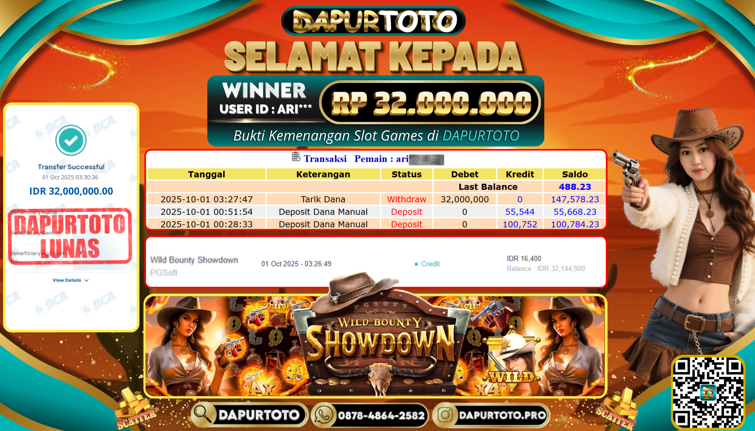 BUKTI JACKPOT SLOT GAME 1 Oktober 2025 Posted by team logic WILD BOUNTY SHOWDOWN RABU,01 OKTOBER 2025 RP. 32.000.000,- SELAMAT KEPADA PEMENANG, SALAM JP ! Updated: 1 Oktober 2025 at 7:00 am ◀ BUKTI JACKPOT SLOT GAME BUKTI JACKPOT SLOT GAME ▶