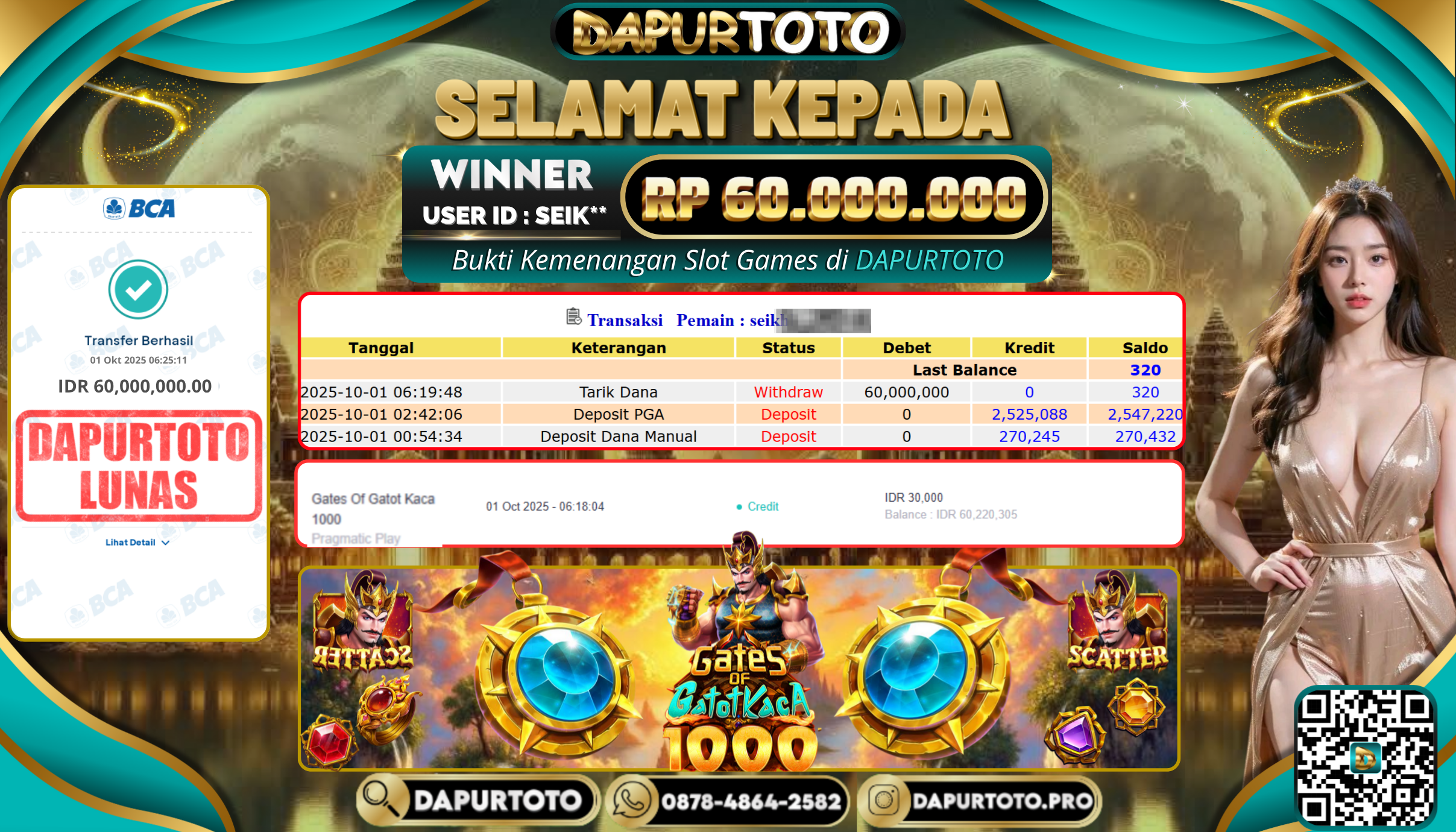 BUKTI JACKPOT SLOT GAME 1 Oktober 2025 Posted by team logic GATES OF GATOTKACA 1000 RABU,01 OKTOBER 2025 RP. 60.000.000,- SELAMAT KEPADA PEMENANG, SALAM JP ! Updated: 1 Oktober 2025 at 7:04 am ◀ BUKTI JACKPOT SLOT GAME BUKTI JACKPOT SLOT GAME ▶