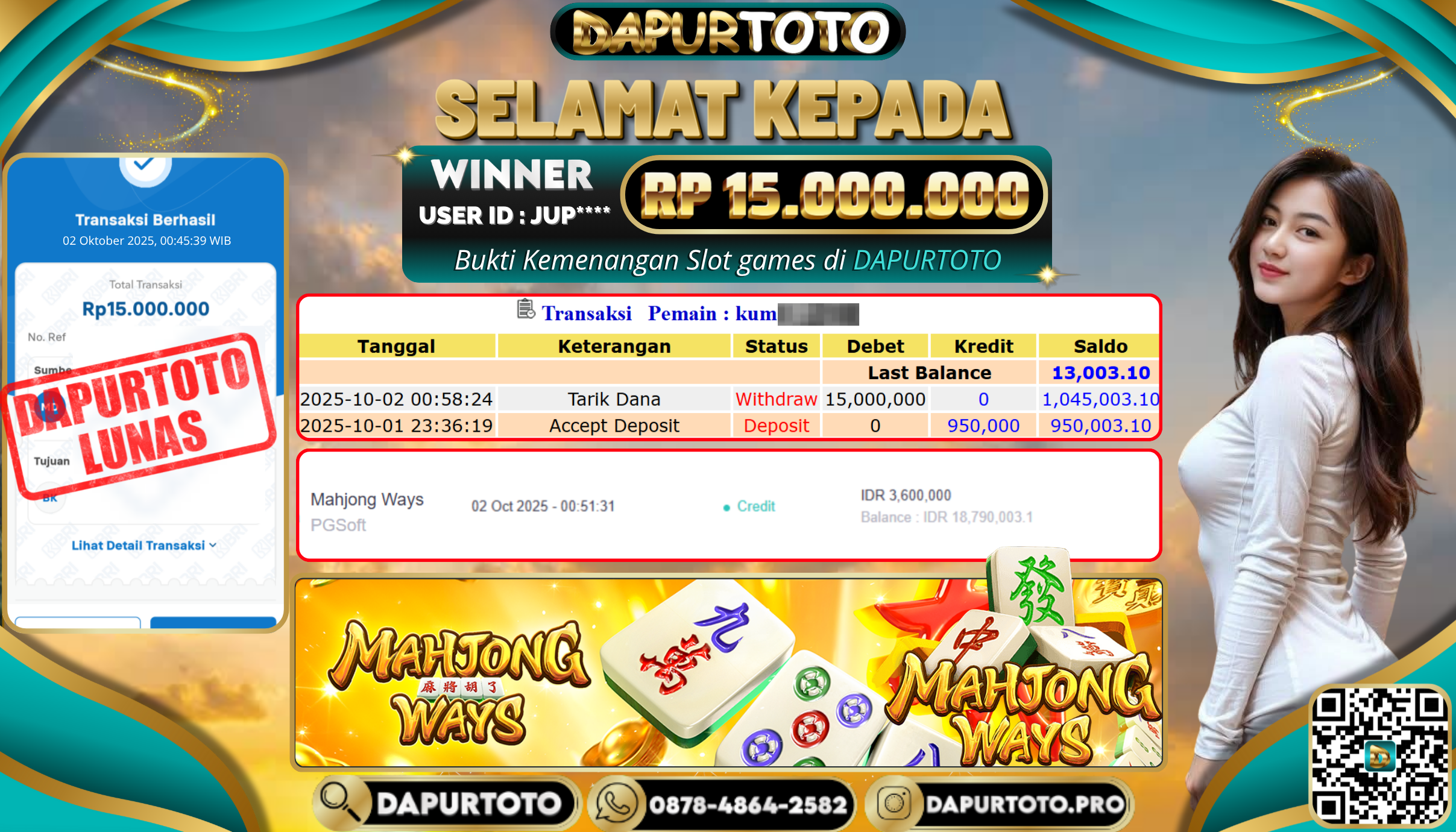 BUKTI JACKPOT SLOT GAME 2 Oktober 2025 Posted by team logic MAHJONG WAYS KAMIS,02 OKTOBER 2025 RP. 15.000.000,- SELAMAT KEPADA PEMENANG, SALAM JP ! Updated: 2 Oktober 2025 at 6:33 am ◀ PREDIKSI TOGEL TOTO MACAU BUKTI JACKPOT SLOT GAME ▶