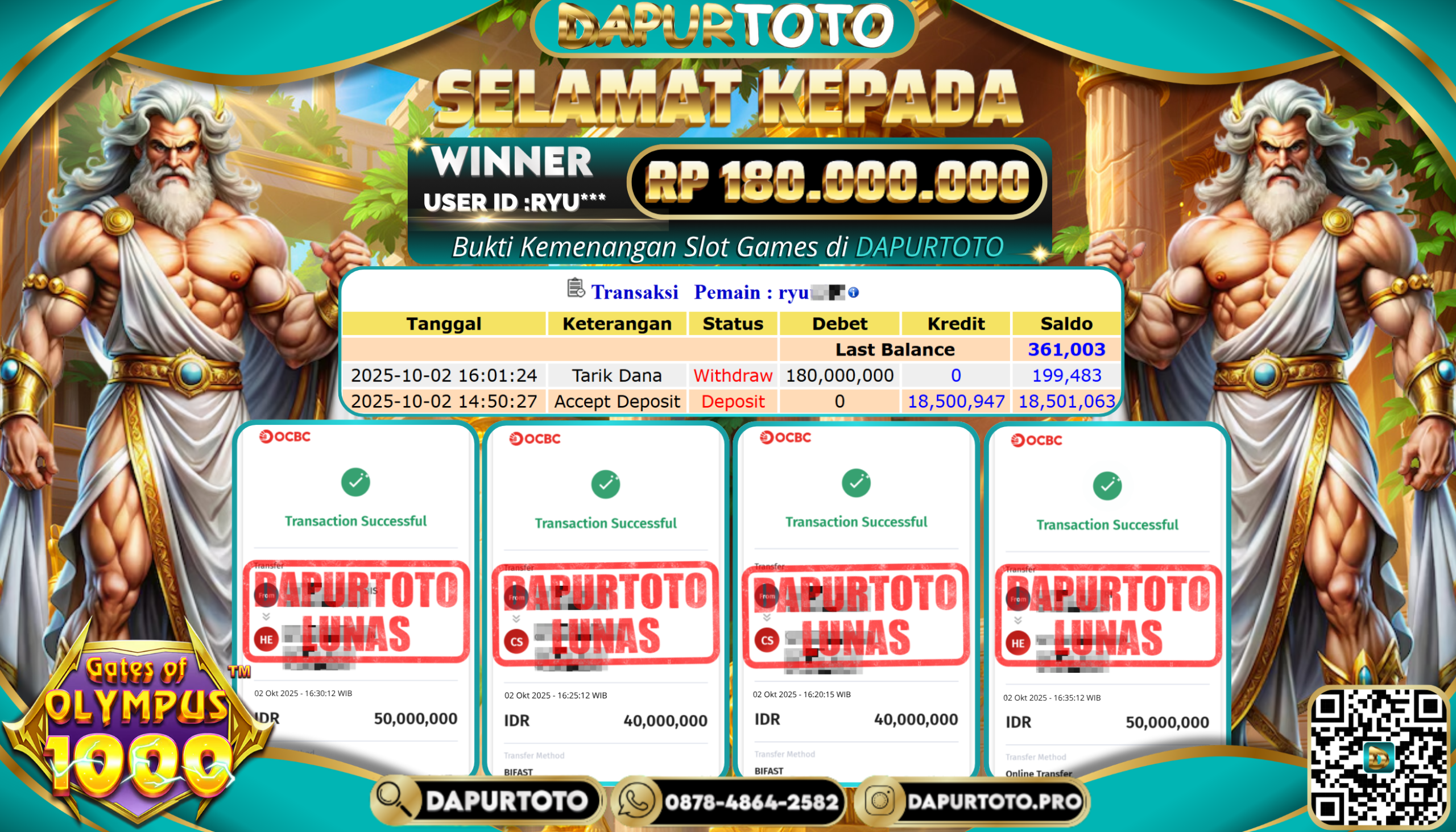 BUKTI JACKPOT SLOT GAME 2 Oktober 2025 Posted by team logic GATES OF OLYMPUS 1000 KAMIS,02 OKTOBER 2025 RP. 180.000.000,- SELAMAT KEPADA PEMENANG, SALAM JP ! Updated: 2 Oktober 2025 at 7:16 pm ◀ BUKTI JACKPOT SLOT GAME PREDIKSI BULLSEYE ▶