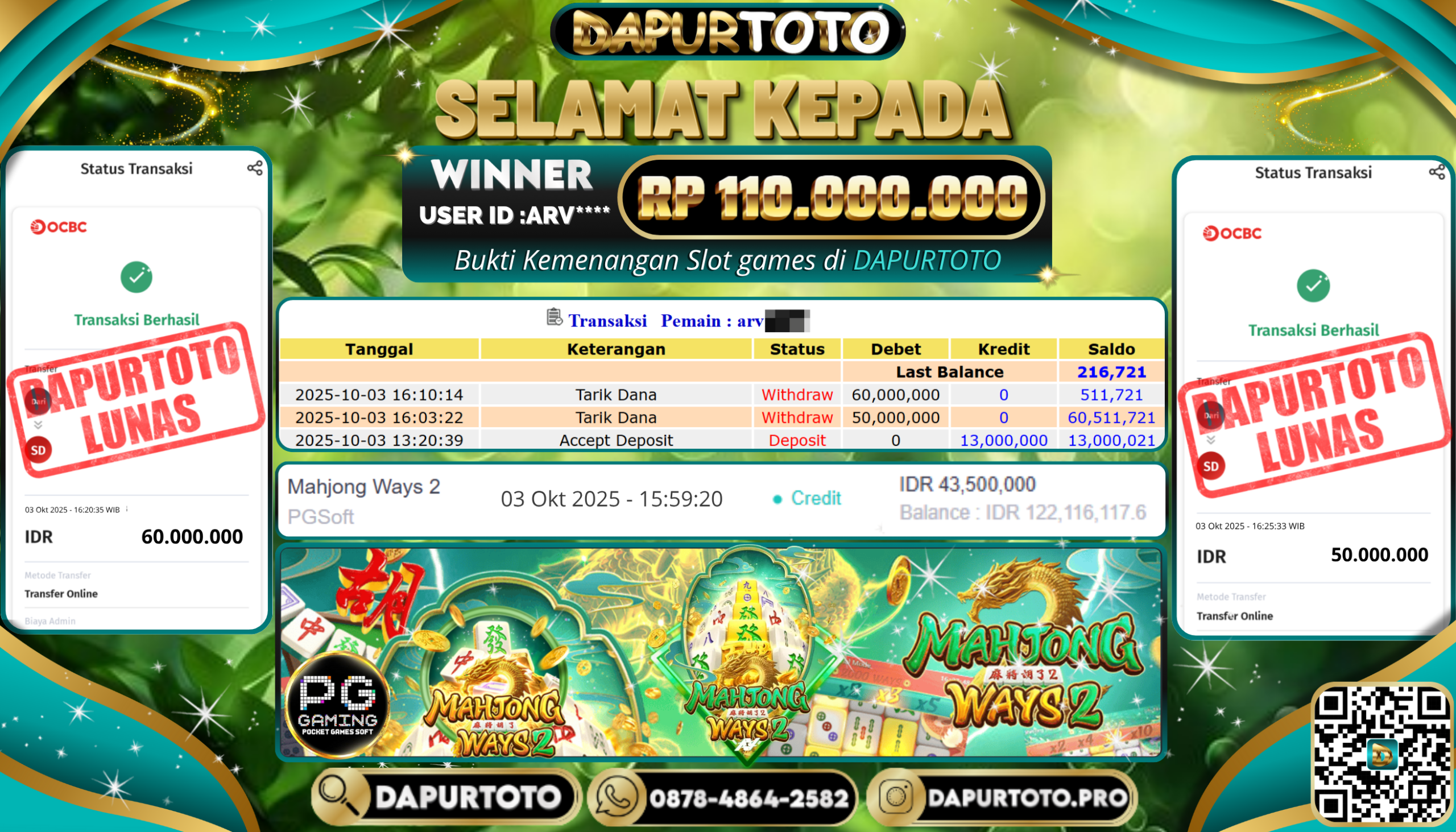 BUKTI JACKPOT SLOT GAME 3 Oktober 2025 Posted by team logic MAHJONG WAYS 2 JUM’AT ,03 OKTOBER 2025 RP. 110.000.000,- SELAMAT KEPADA PEMENANG, SALAM JP ! Updated: 3 Oktober 2025 at 6:06 pm ◀ BUKTI JACKPOT SLOT GAME BUKTI JACKPOT SLOT GAME ▶