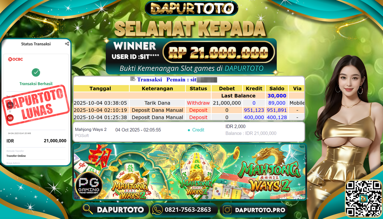BUKTI JACKPOT SLOT GAME 4 Oktober 2025 Posted by team logic MAHJONG WAYS 2 SABTU ,04 OKTOBER 2025 RP. 21.000.000,- SELAMAT KEPADA PEMENANG, SALAM JP ! Updated: 4 Oktober 2025 at 1:05 pm ◀ BUKTI JACKPOT SLOT GAME BUKTI JACKPOT SLOT GAME ▶