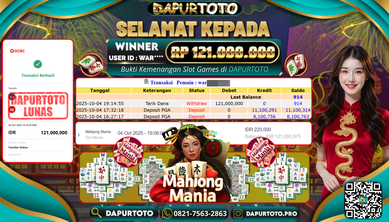 BUKTI JACKPOT SLOT GAME 4 Oktober 2025 Posted by team logic MAHJONG MANIA SABTU ,04 OKTOBER 2025 RP. 121.000.000,- SELAMAT KEPADA PEMENANG, SALAM JP ! Updated: 4 Oktober 2025 at 7:02 pm ◀ BUKTI JACKPOT LIVE GAMES PREDIKSI BULLSEYE ▶