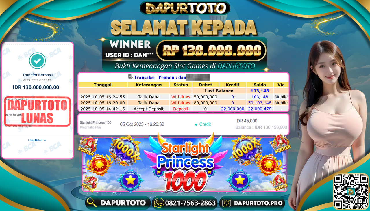 BUKTI JACKPOT SLOT GAME 5 Oktober 2025 Posted by team logic STARLIGHT PRINCESS 1000 MINGGU ,05 OKTOBER 2025 RP. 130.000.000,- SELAMAT KEPADA PEMENANG, SALAM JP ! Updated: 5 Oktober 2025 at 5:48 pm ◀ BUKTI JACKPOT SLOT GAME BUKTI JACKPOT SLOT GAME ▶