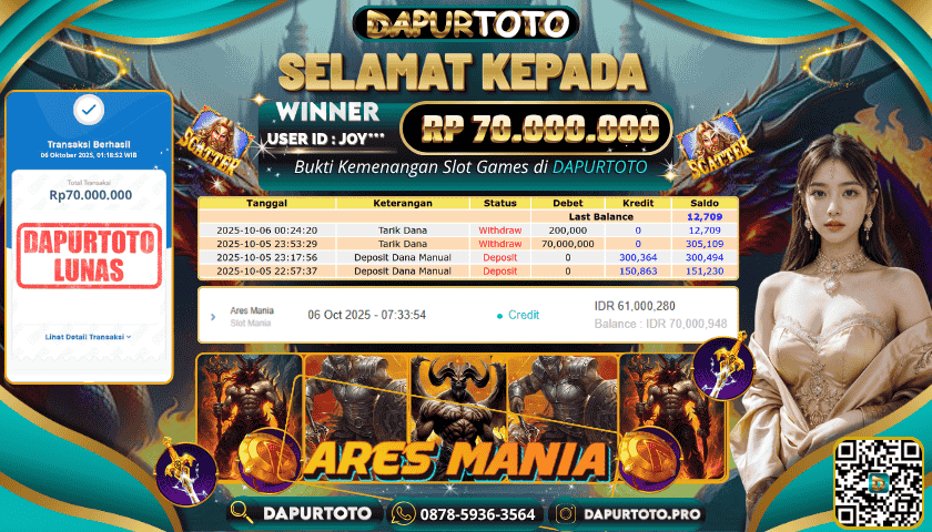 BUKTI JACKPOT SLOT GAME 6 Oktober 2025 Posted by team logic ARES MANIA SENIN ,06 OKTOBER 2025 RP. 70.000.000,- SELAMAT KEPADA PEMENANG, SALAM JP ! Updated: 6 Oktober 2025 at 12:45 pm ◀ BUKTI JACKPOT SLOT GAME BUKTI JACKPOT SLOT GAME ▶