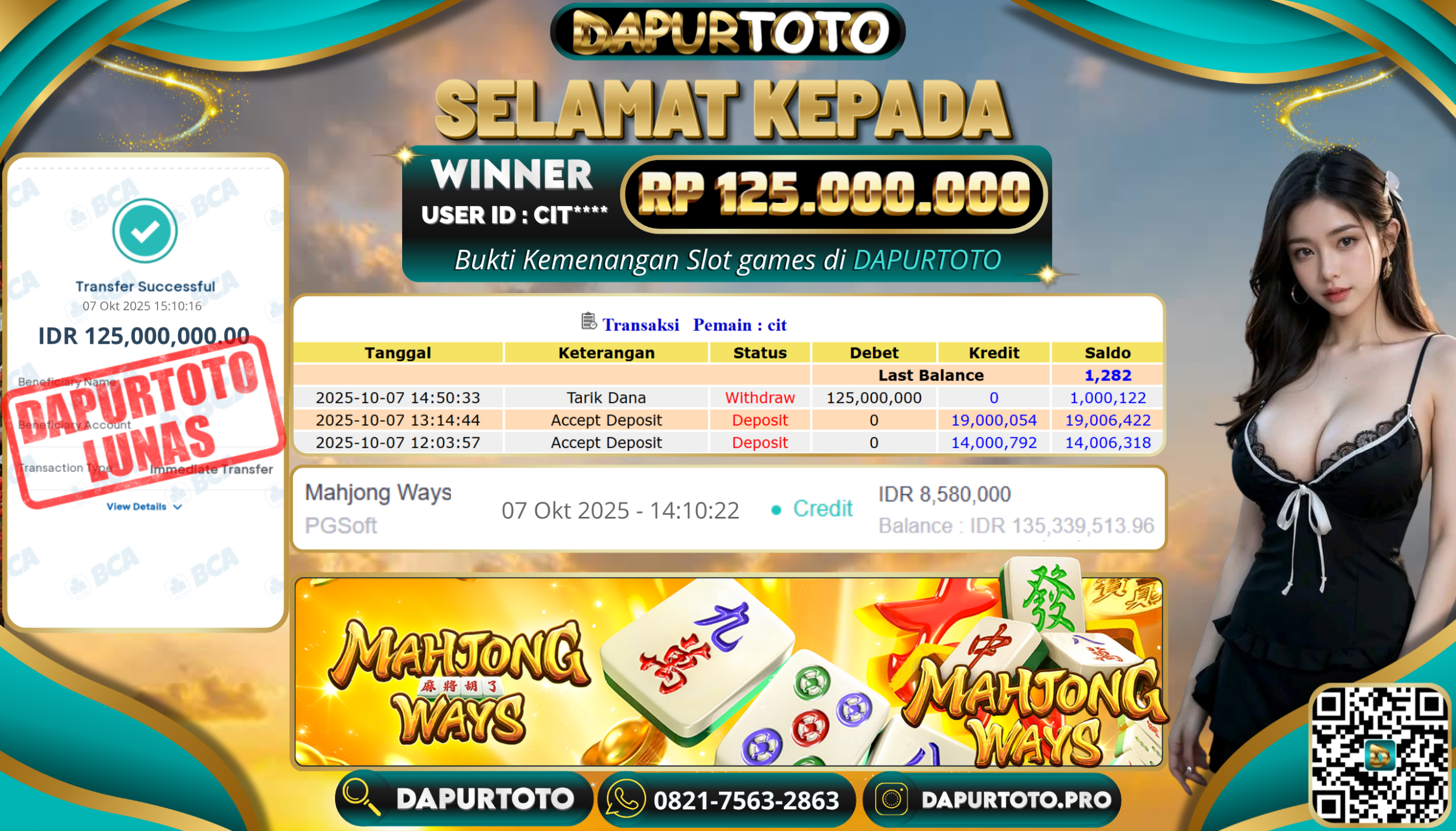 BUKTI JACKPOT SLOT GAME 7 Oktober 2025 Posted by team logic MAHJONG WAYS SELASA ,07 OKTOBER 2025 RP. 125.000.000,- SELAMAT KEPADA PEMENANG, SALAM JP ! Updated: 7 Oktober 2025 at 7:31 pm ◀ BUKTI JACKPOT SLOT GAME BUKTI JACKPOT SLOT GAME ▶