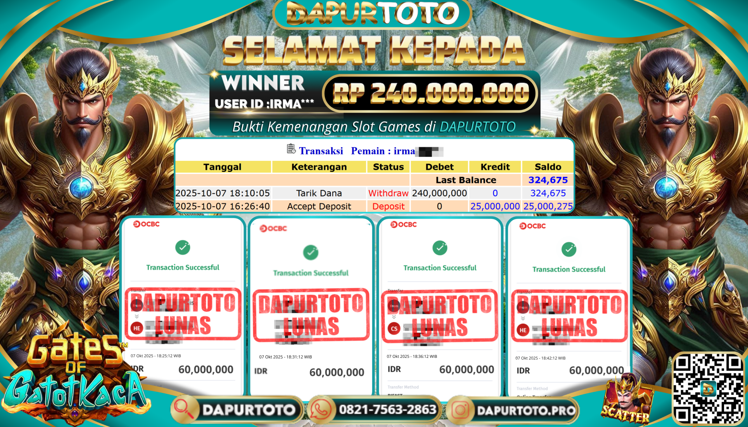 BUKTI JACKPOT SLOT GAME 7 Oktober 2025 Posted by team logic GATES OF GATOT KACA 1000 SELASA ,07 OKTOBER 2025 RP. 240.000.000,- SELAMAT KEPADA PEMENANG, SALAM JP ! Updated: 7 Oktober 2025 at 8:02 pm ◀ BUKTI JACKPOT SLOT GAME PREDIKSI BULLSEYE ▶